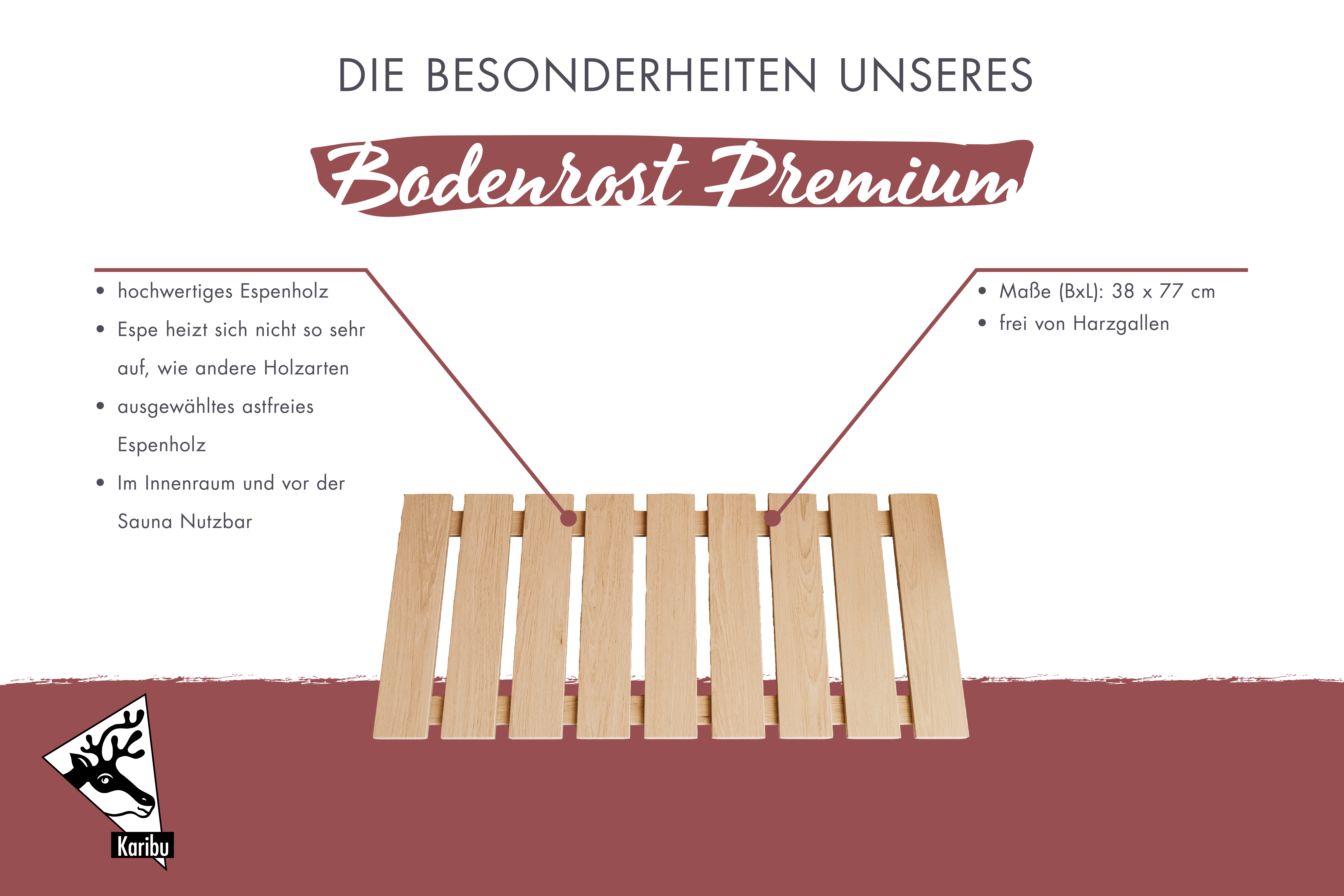 - Premium Saunabodenrost aus hochwertigen Espenholz
