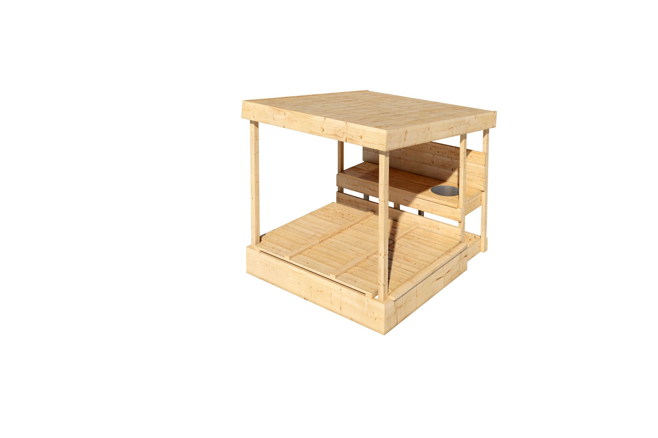 Entdecken Sie den perfekten Ort für kreative Entfaltung und unbeschwertes Spielen im Freien – der überdachte Sandkasten in Kombination mit einer Matschküche aus nordischer Fichte bietet alles, was kleine Entdecker und Abenteurer sich wünschen. Dank hochwertiger Materialien, durchdachtem Design und zusätzlicher Ausstattung wird dieser Sandkasten zum Highlight in Ihrem Garten.