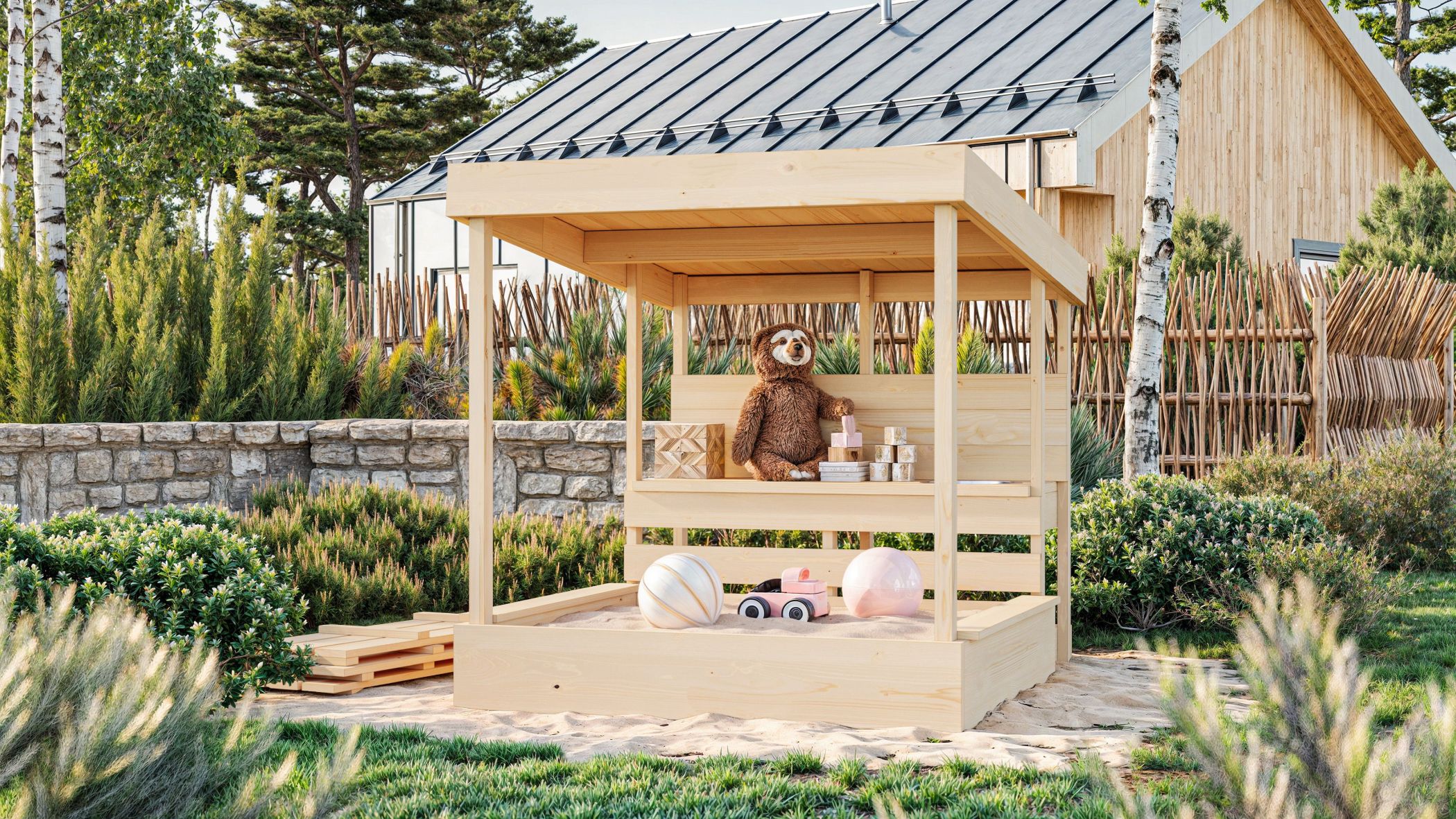 Verleihen Sie dem Spielplatz Ihres Kindes einen Hauch von nordischer Natur – mit einem überdachten Sandkasten aus nordischer Fichte, der sowohl ästhetisch als auch funktional überzeugt. Hier wird das Spielen zu einem ganz besonderen Erlebnis!