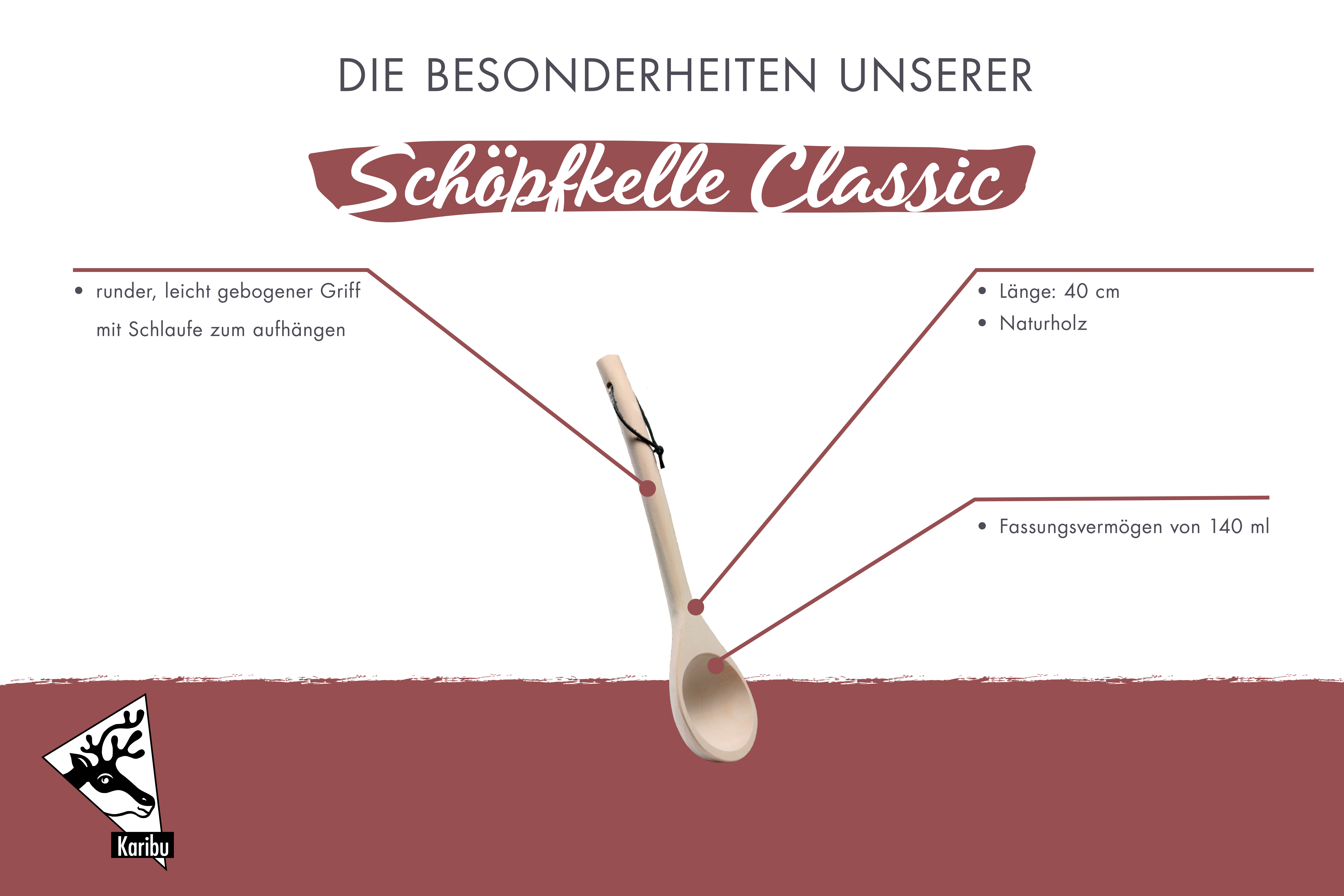 Seit Jahrhunderten ist das traditionelle Saunieren ein fester Bestandteil der finnischen Kultur. Die klassische finnische Art ist der Gang in die schornsteinlose Rauchsauna, die über besondere Wand- und Dachlöcher zum Entweichen des Rauches verfügt. Selbstverständlich darf hier der Löyly, der typische Aufguss, nicht fehlen. Damit Sie Ihrem Saunaerlebnis ein bisschen finnische Kultur einhauchen können, empfehlen wir unseren Schöpfkelle Classic. Dieser hat ein Fassungsvermögen von 140ml. So kann der typische Aufguss, der meist aus Wasser und Duftölen besteht, während dem Saunagang mit der Schöpfkelle aufgegossen werden. Die Schöpfkelle classic besteht aus Naturholz mit rundem, leicht gebogenem Griff und einer Schlaufe zum Aufhängen. Machen Sie den typischen Löyly mit der Schöpfkelle classic auch in Ihrer kleinen Wellness-Oase und holen Sie sich ein bisschen finnische Kultur in die eigenen vier Wände.