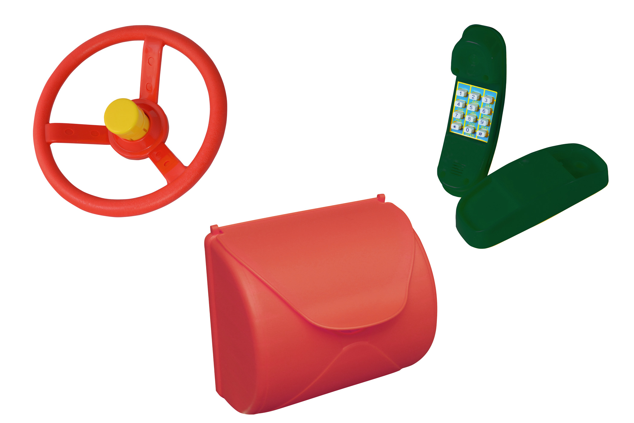 Beautify your climbing frame with a steering wheel. It shines in a bright red, including a sunny yellow horn.