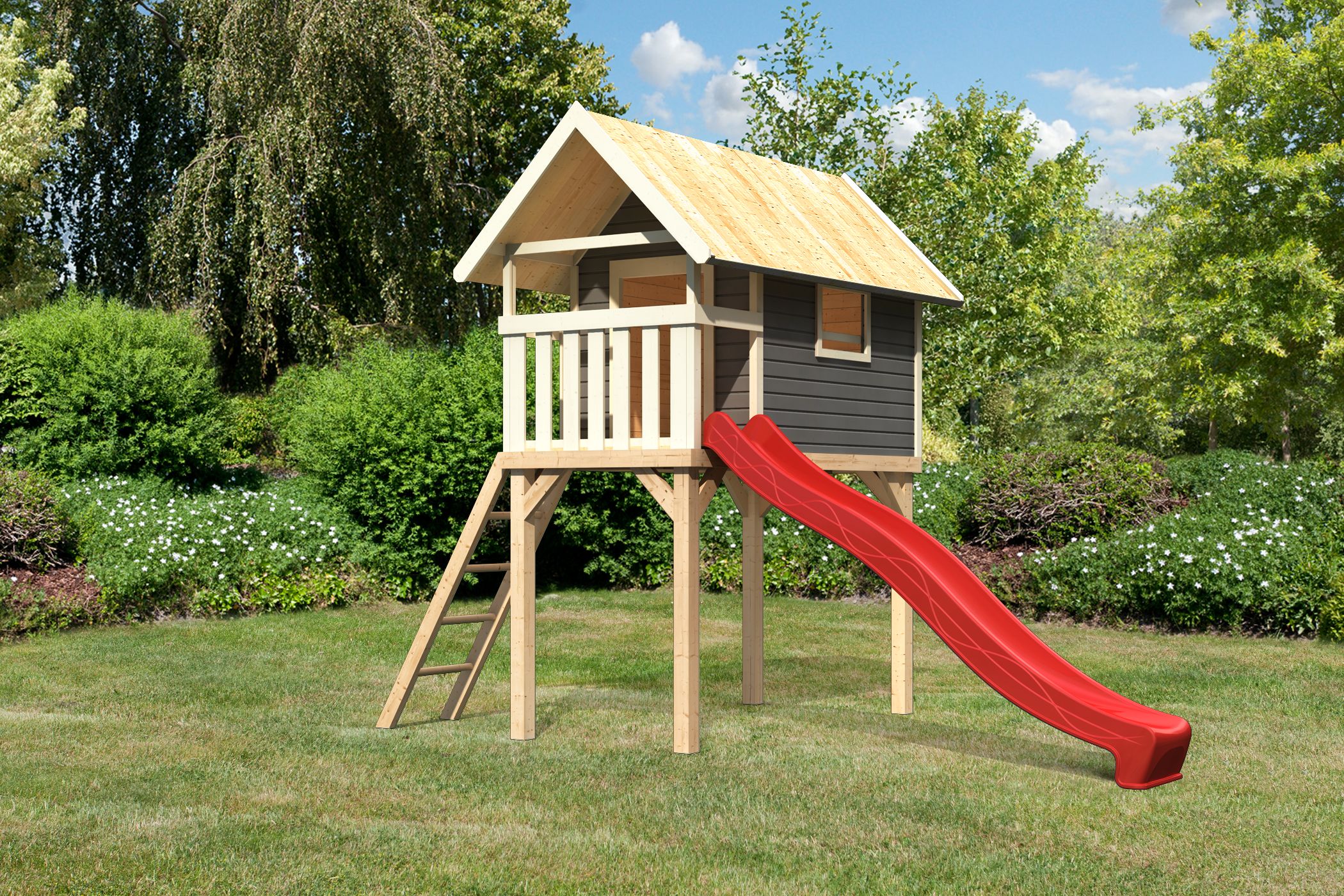 Unser Stelzenhaus Gernegroß lässt sich ganz individuell zusammenstellen. Mit Holz- oder Netzrampe? Dazu noch eine 300 cm lange Rutsche? Eine rote oder blaue? Entdecke unsere vielseitigen Möglichkeiten und zaubere dir einen echten Hingucker in den Garten.