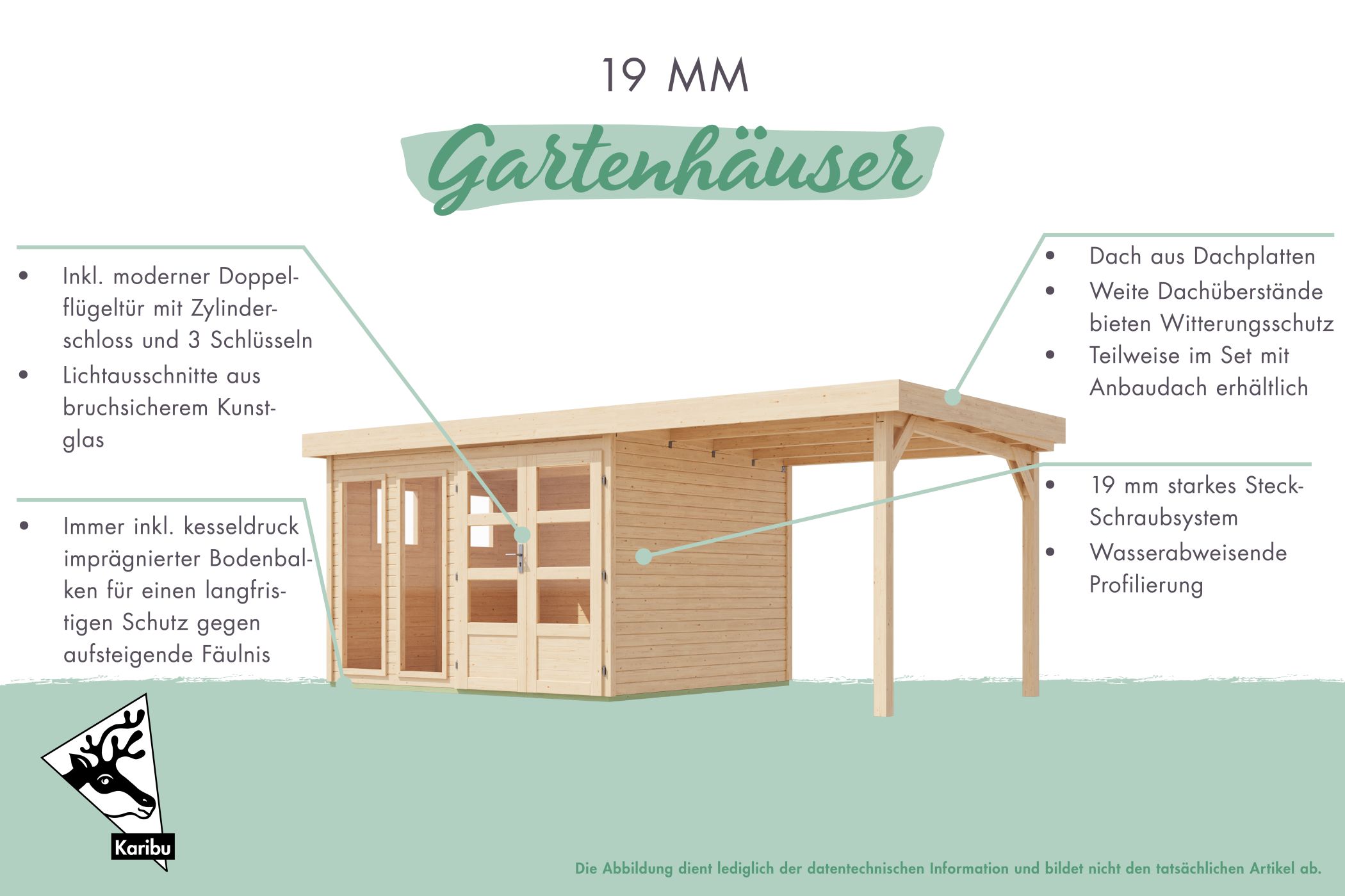Karibu large garden shed "Lahar 6" flat roof approx. 3x3m (3.02x3.06m) modern made of wood in nature