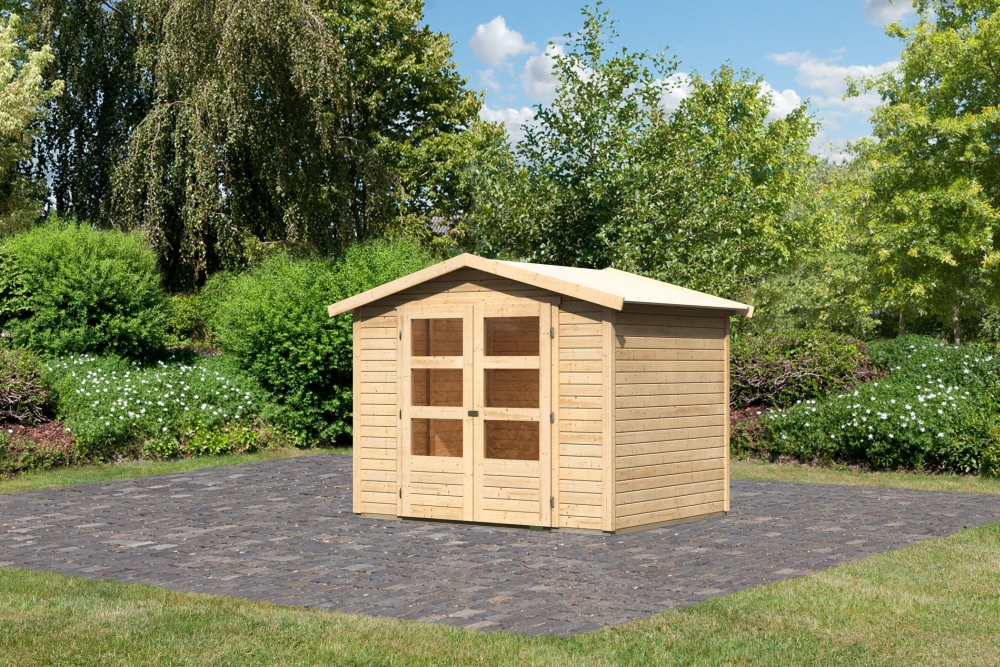Karibu Gerätehaus “Amberg 3” Satteldach modern aus Holz in Natur