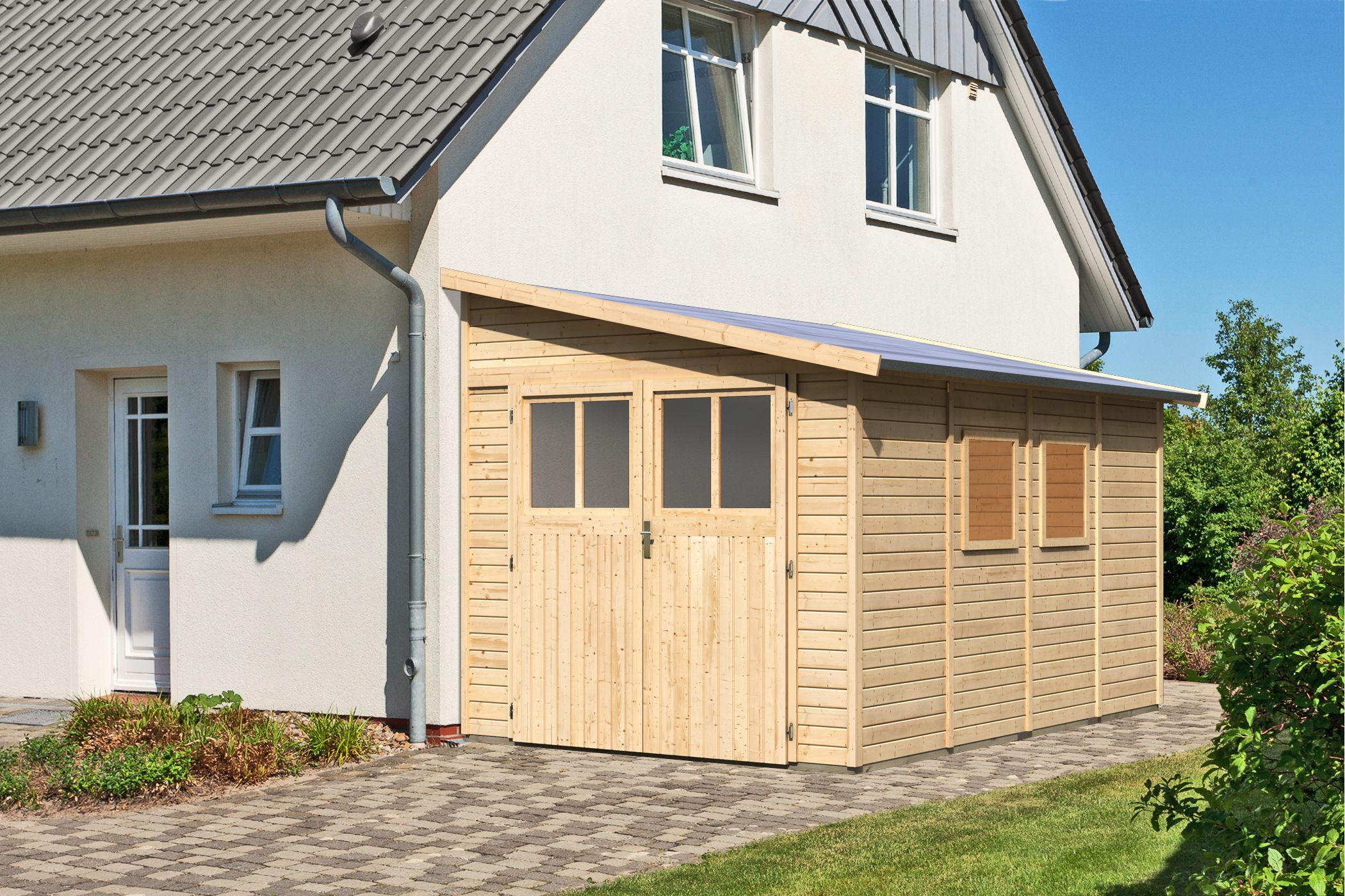 Karibu großes Gerätehaus “Bomlitz 4” Pultdach modern aus Holz in Natur