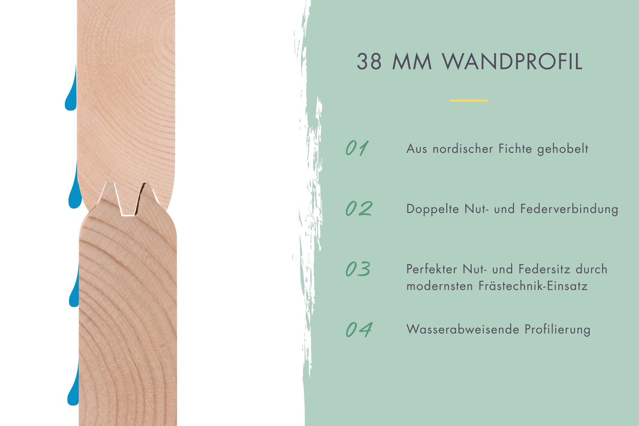 - Garden house made of high-quality Nordic spruce with water-repellent profiling
