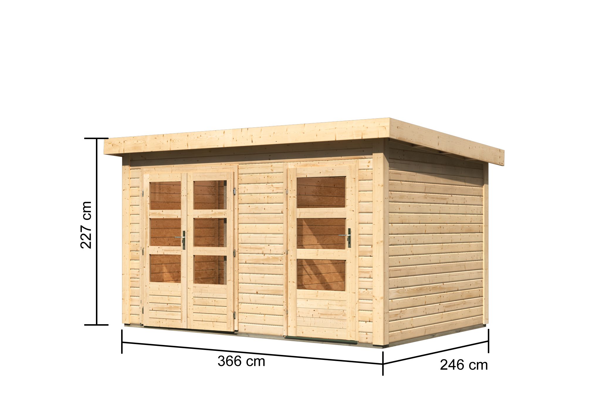 Karibu Garden house "Schönbuch 1" flat roof for living with two rooms modern made of wood in nature