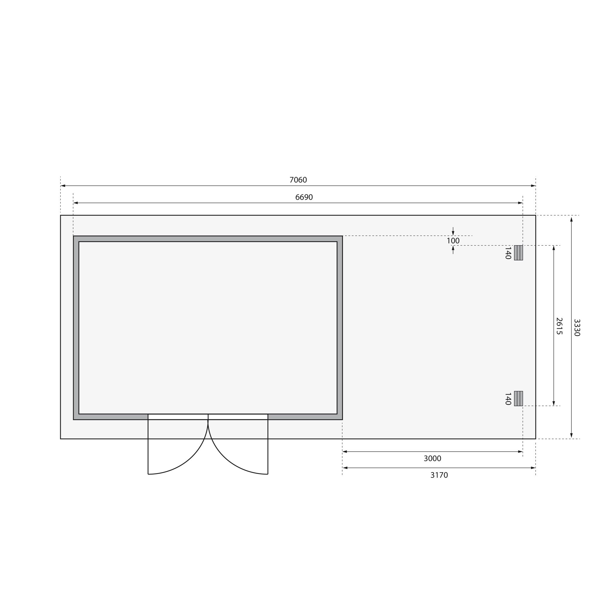 The right thing for every garden with the Trittau 5 garden shed. The garden house with a wall thickness of 38 mm made of Nordic spruce wood is installed in classic log construction. The patented 6-plus corner connection gives the house a special stability. The monopitch roof house made of solid wood convinces with its modern look. The double hinged door with three light cutouts per door leaf lets plenty of daylight into the interior and thus provides a natural light source. The garden house Trittau 5 is available in its natural state and can be extended with an optionally available extension roof in a width of 3.30 m or 4.40 m. Thus, an individual design according to one's own ideas is easily possible. The interior with the dimensions (WxD) 364 x 274 cm is generously proportioned and offers you a wide variety of furnishing options. The house can serve as a shelter for your garden tools, as a playhouse for your children or as a cosy retreat in your own garden. There are no limits to your creativity here. Through a window and an optionally available floor the garden house becomes really at home and is certainly the right thing for your garden.