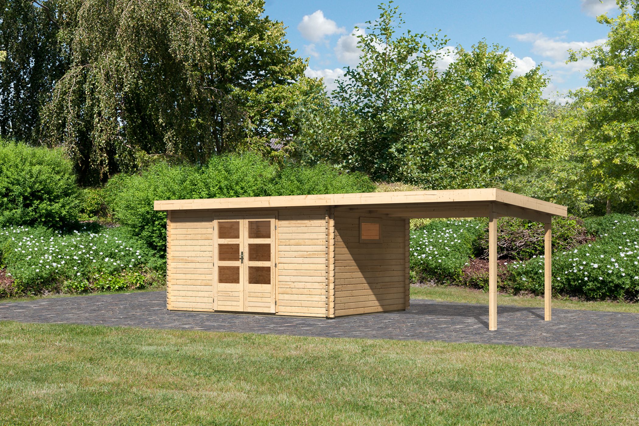 Karibu Garden house "Trittau 5" monopitch roof for living with extension/terrace made of wood in nature