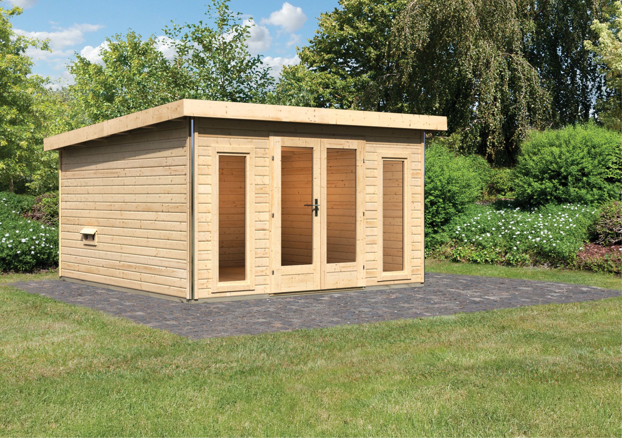 Karibu Gartensauna "Saunahaus Mainburg 3" mit Vorraum 4 Personen Natur ohne Ofen