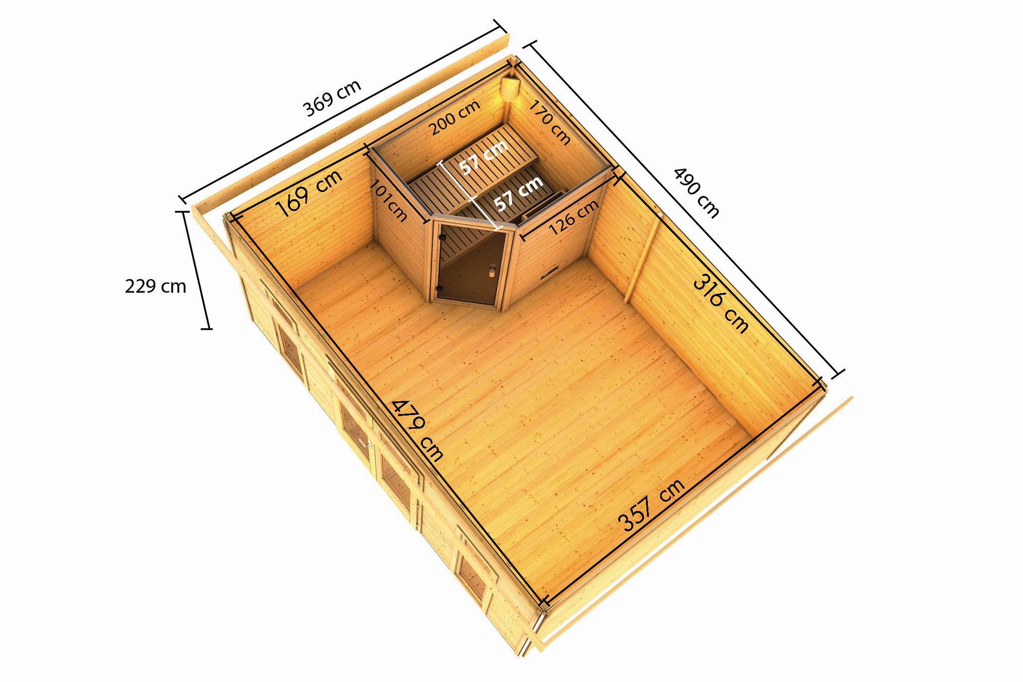 Karibu Gartensauna "Saunahaus Mainburg 4" mit Vorraum 4 Personen Natur ohne Ofen