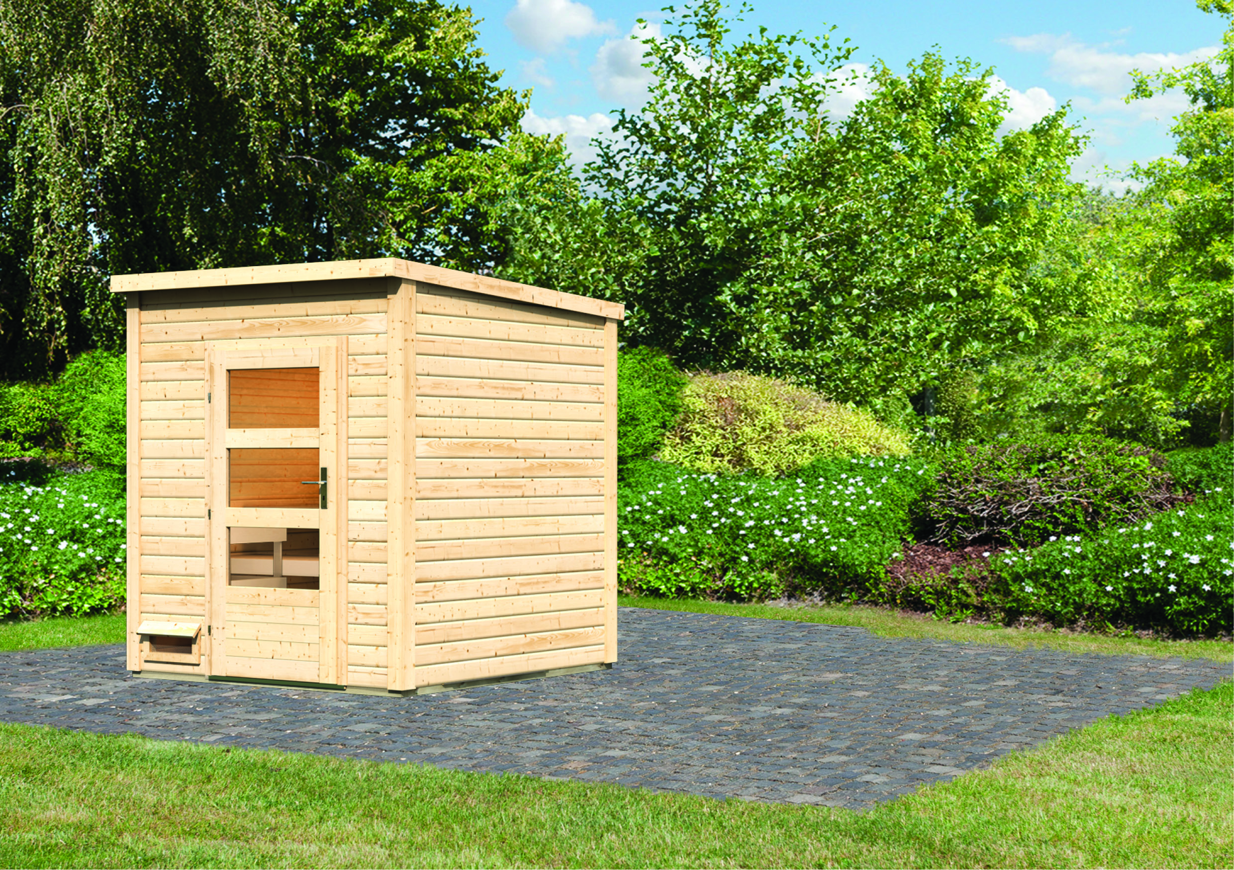 Karibu Mini Gartensauna "Saunahaus Pepe 2" 4 Personen Natur ohne Ofen