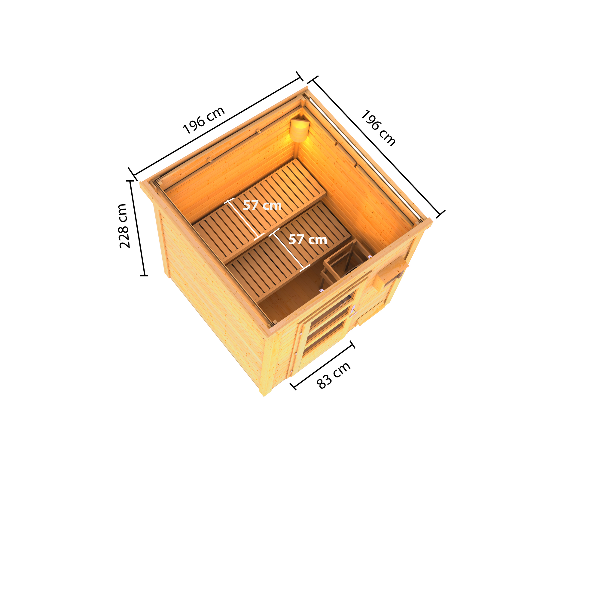 | Inner dimensions width sauna: | 185 cm |