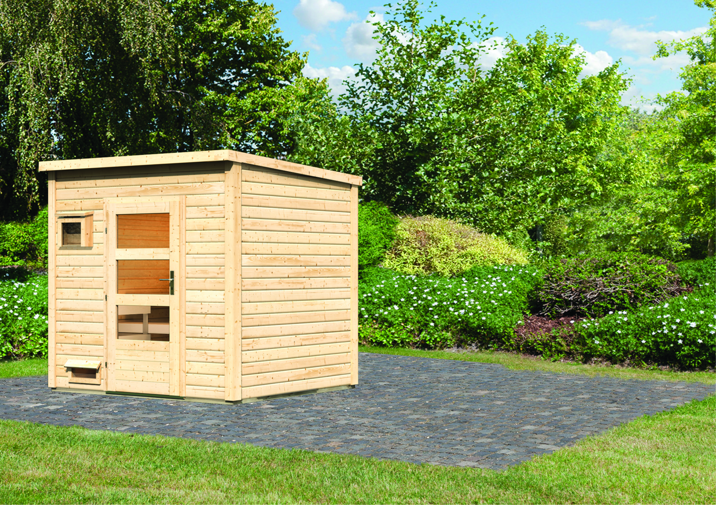 Karibu Mini Gartensauna "Saunahaus Pepe 3" 5 Personen Natur ohne Ofen