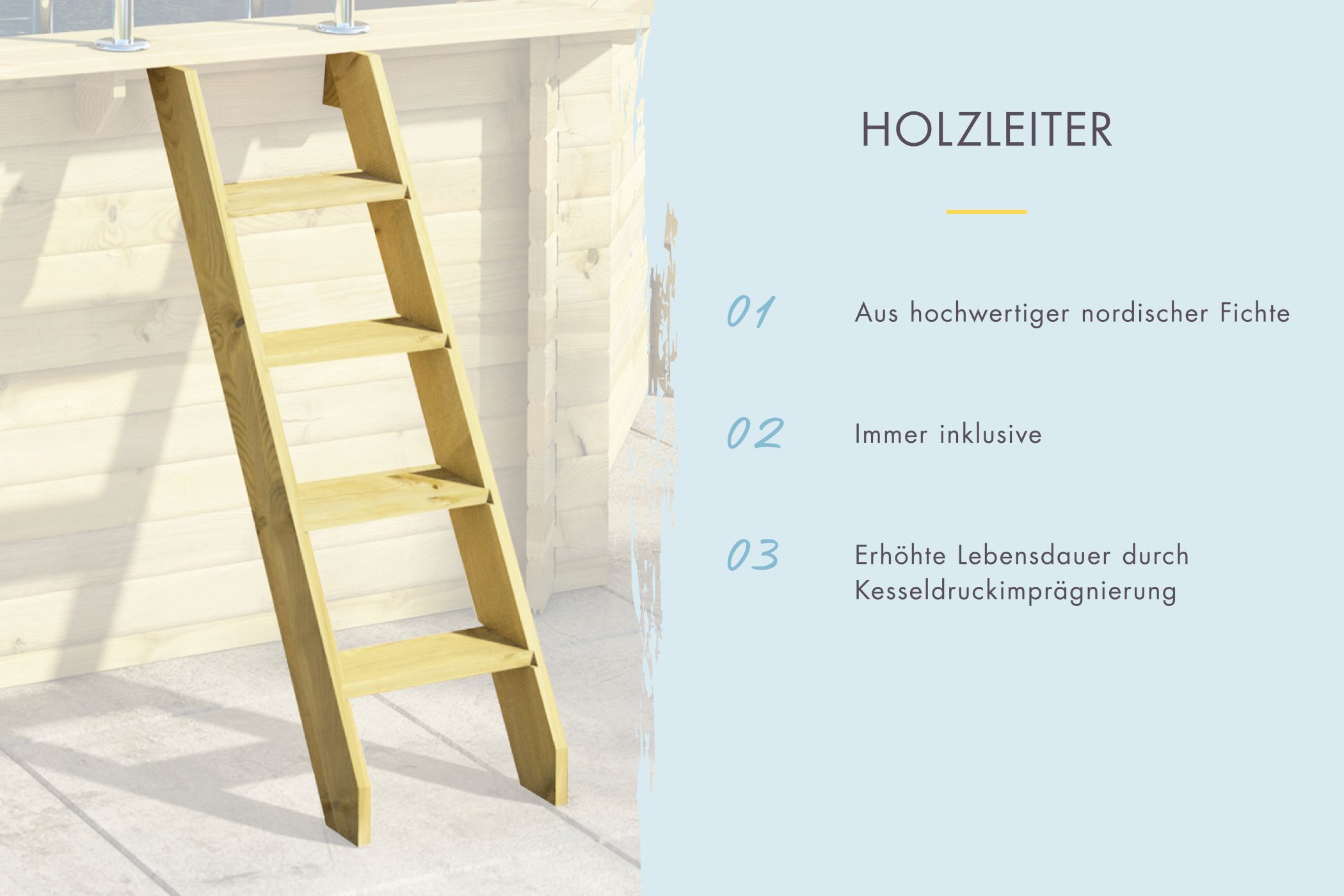 - Incl. high-quality stainless steel and wooden ladder