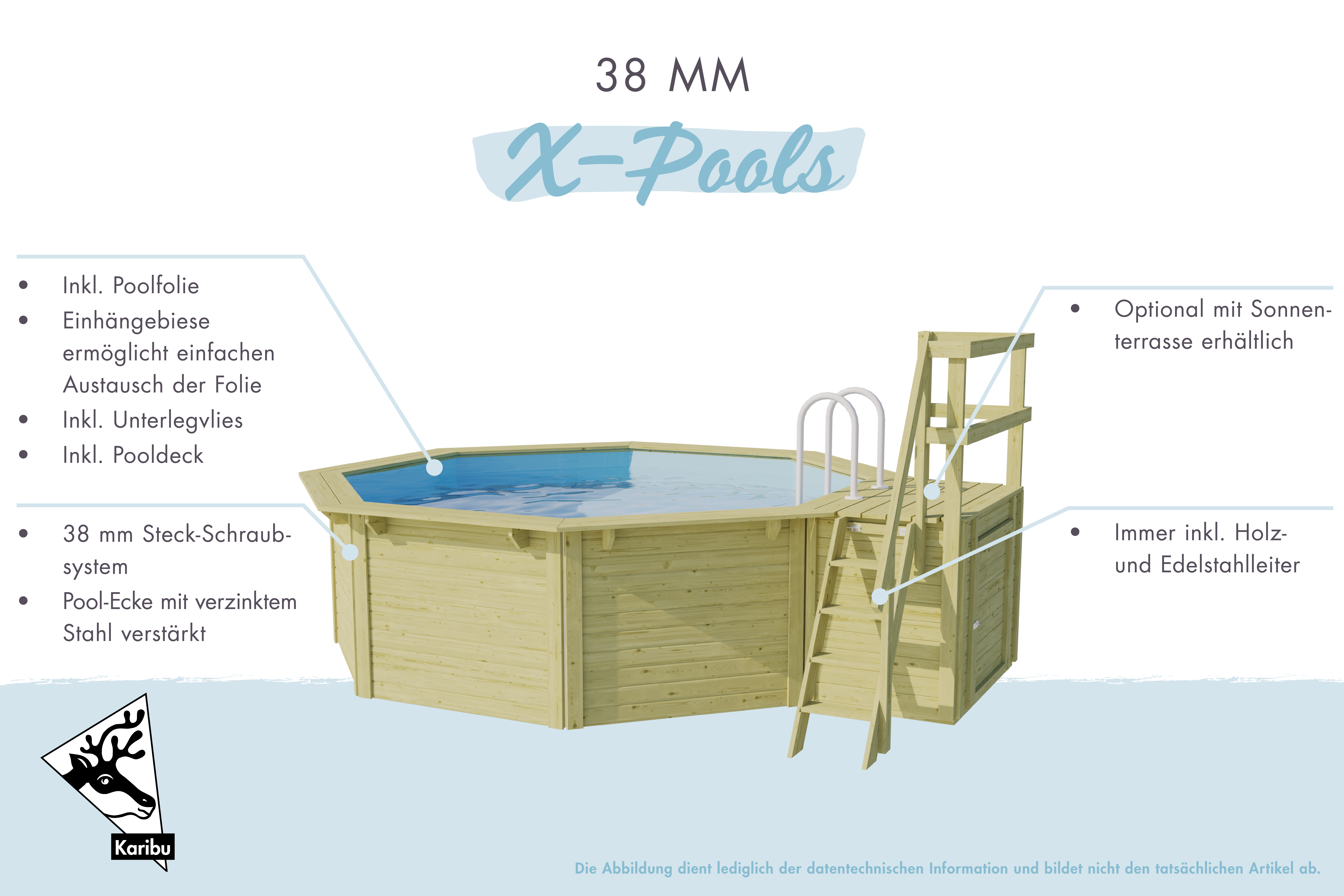 Karibu “Pool Modell X1” ca. 3,6x3,6m aus Holz (kesseldruckimprägniert)