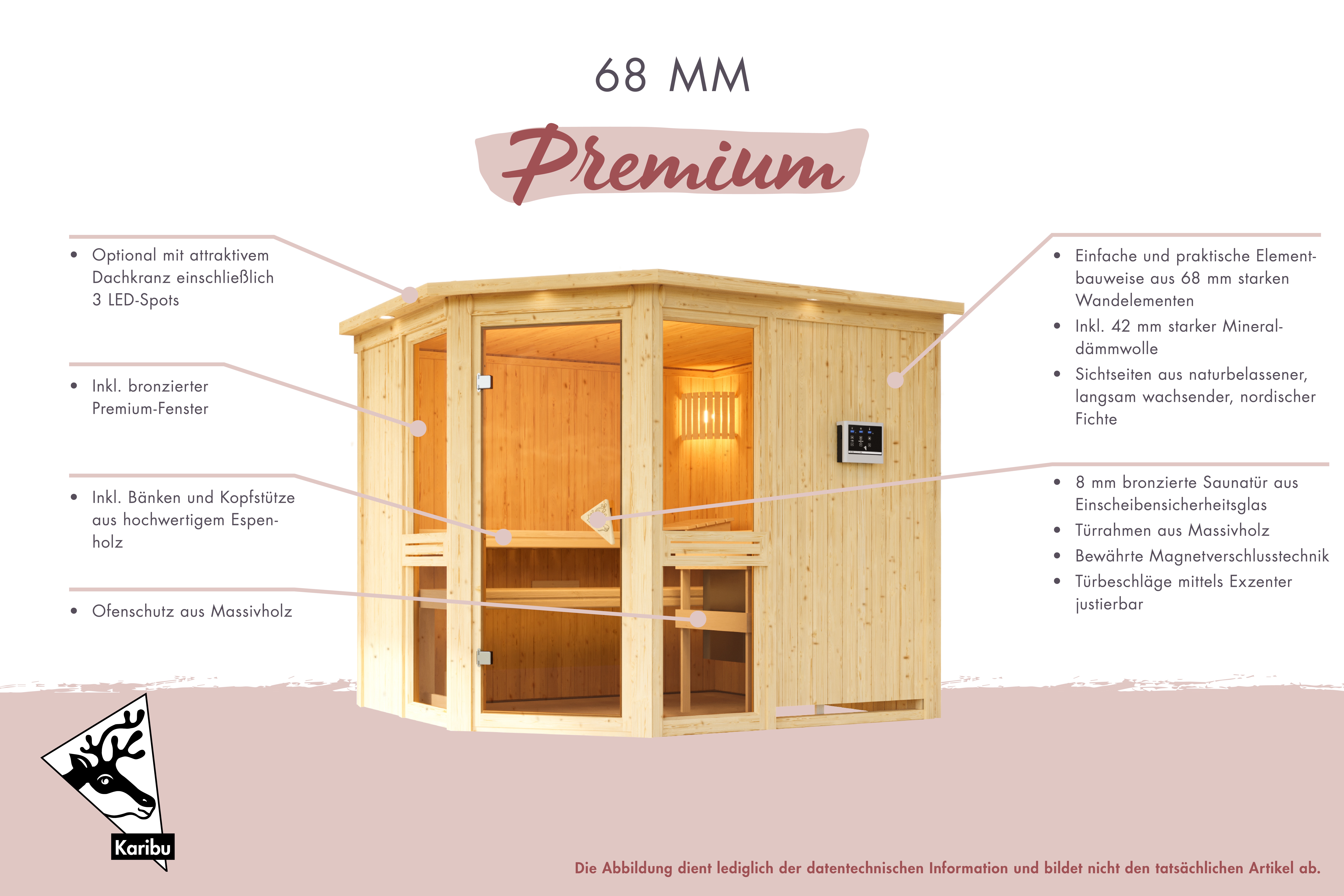 Karibu Design Sauna "Sauna Amelia 3" 5 Personen ohne Ofen