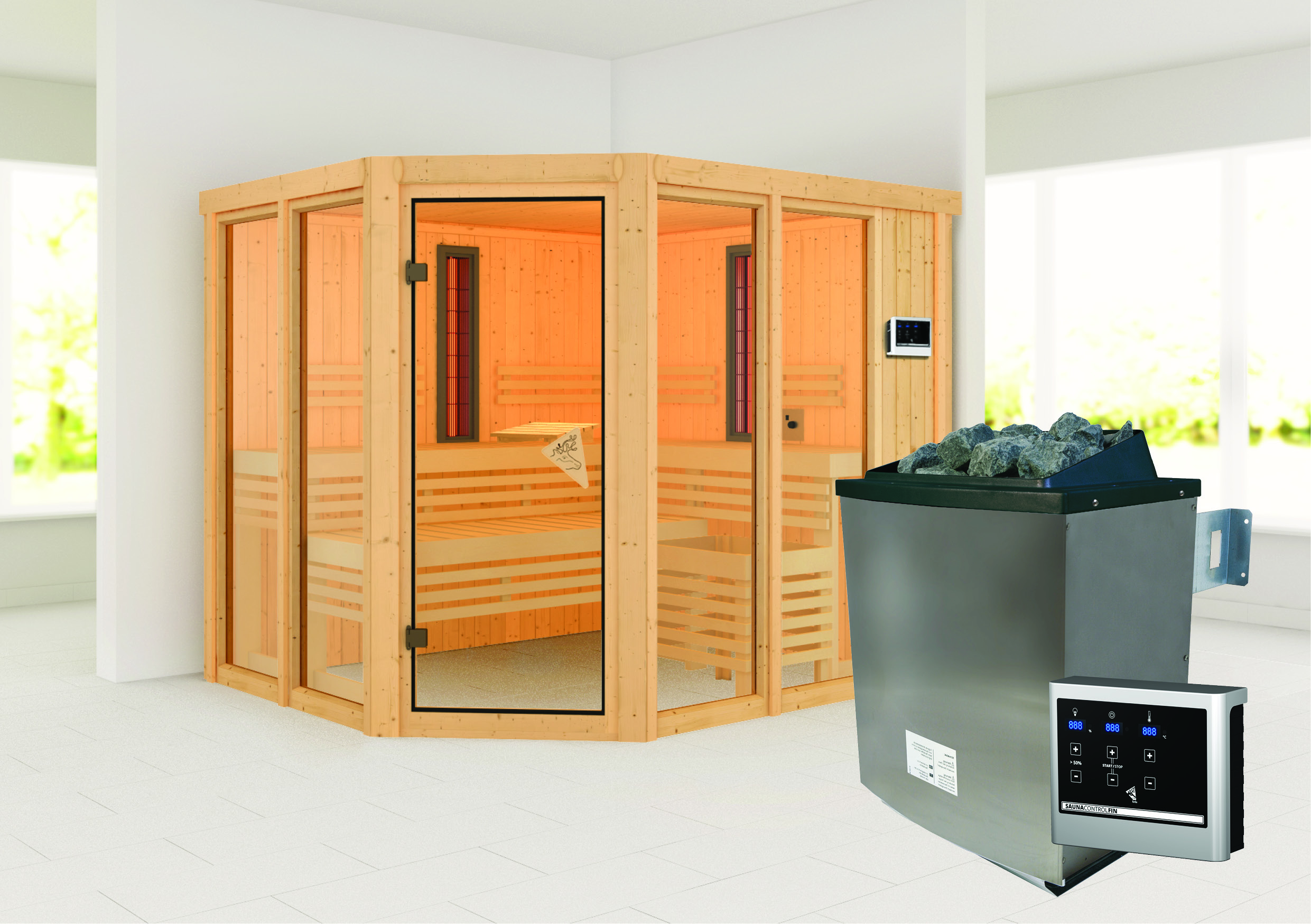 Karibu Infrarotsauna "Sauna Ava" 5 Personen 9 kW Ofen (finnisch) + Steuergerät