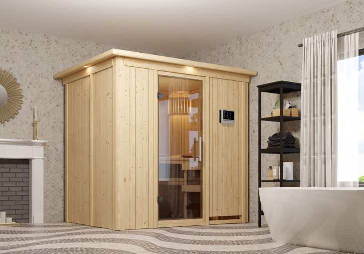 Karibu Innensauna "Sauna Fanja" 3 Personen 230 V ohne Ofen Glastür (klar)