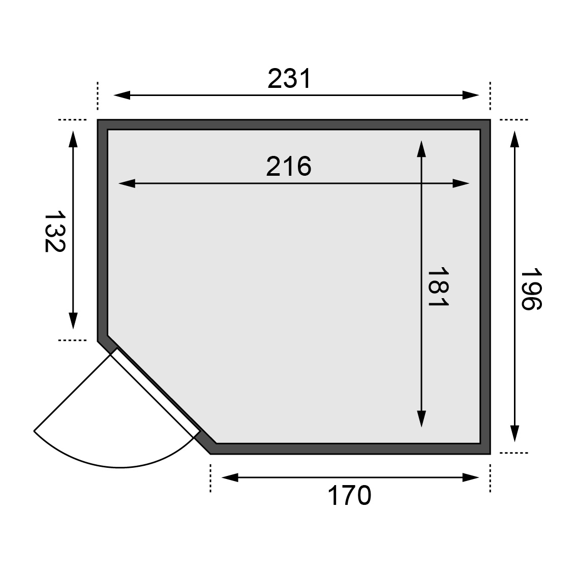 | Outer dimension width: | 231 cm |