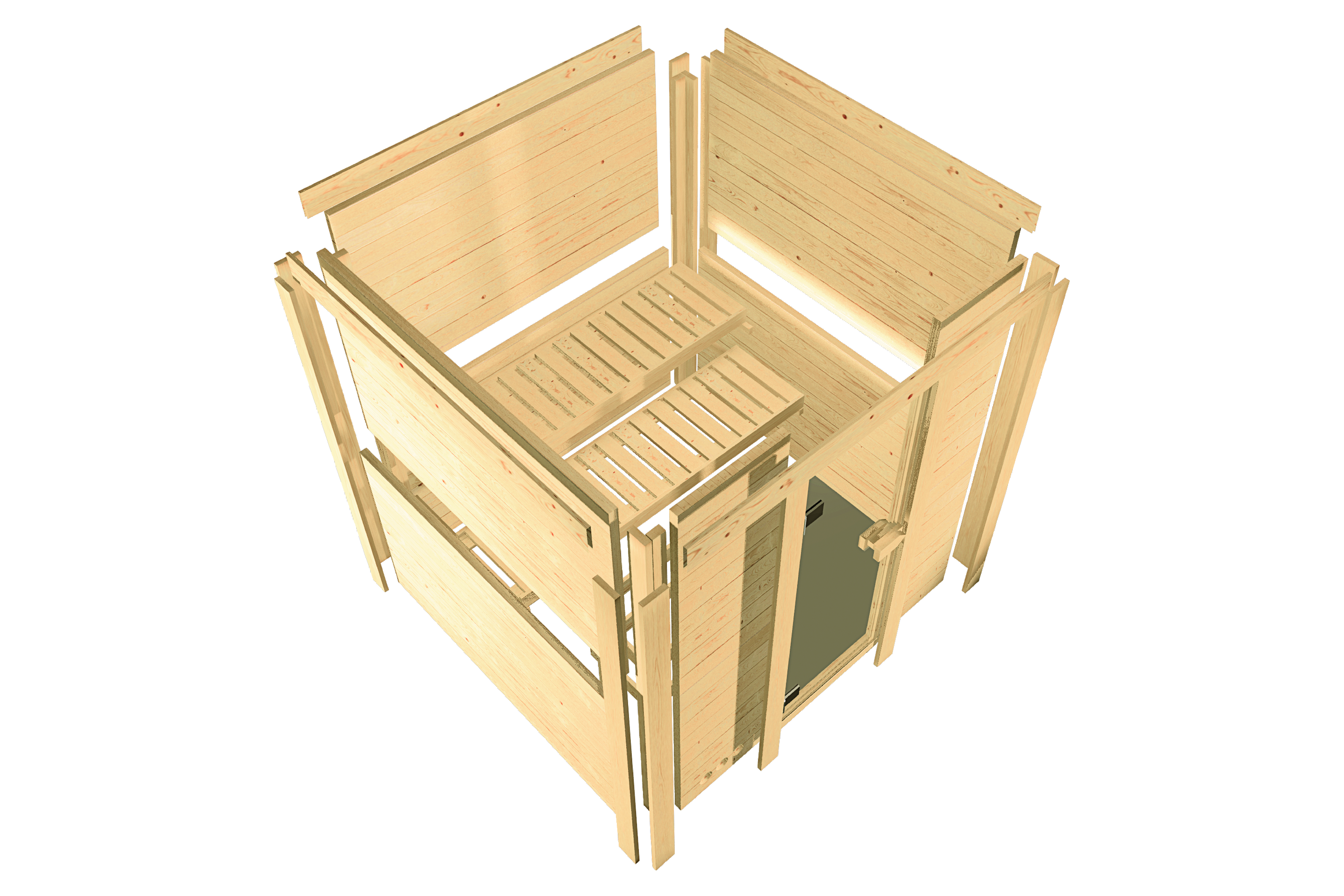 Karibu Massivholzsauna "Sauna Sahib 2" 4 Personen ohne Ofen Glastür (klar)