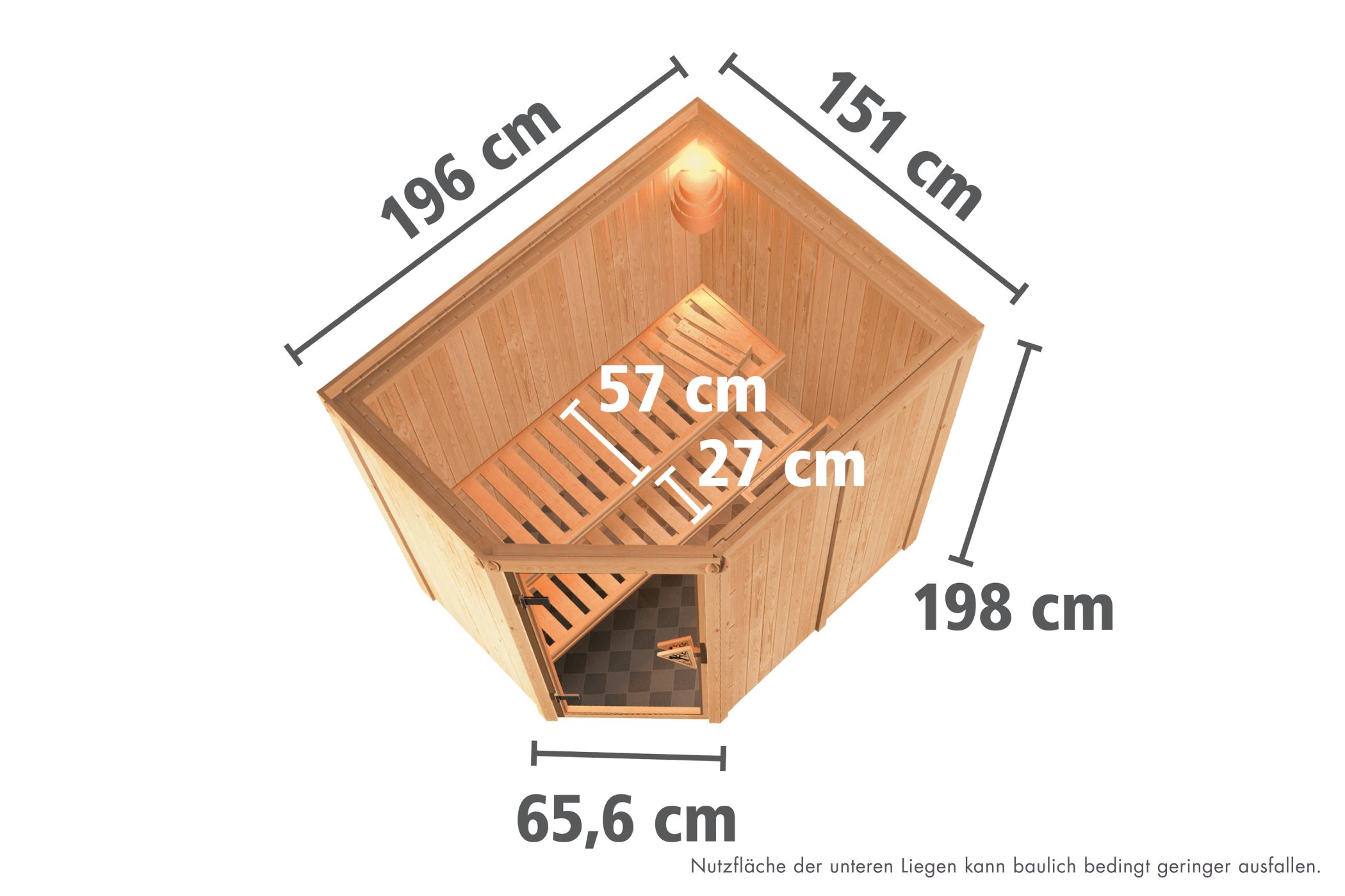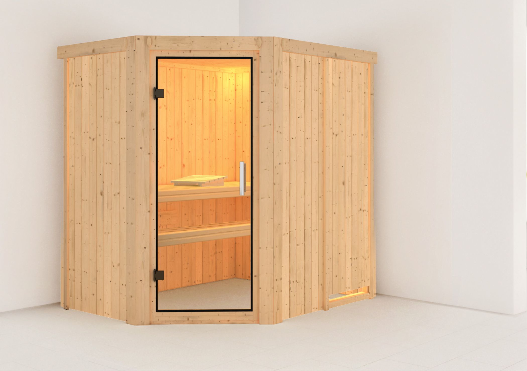 Karibu Innensauna "Sauna Saja" 3 Personen 230 V ohne Ofen Glastür (klar)