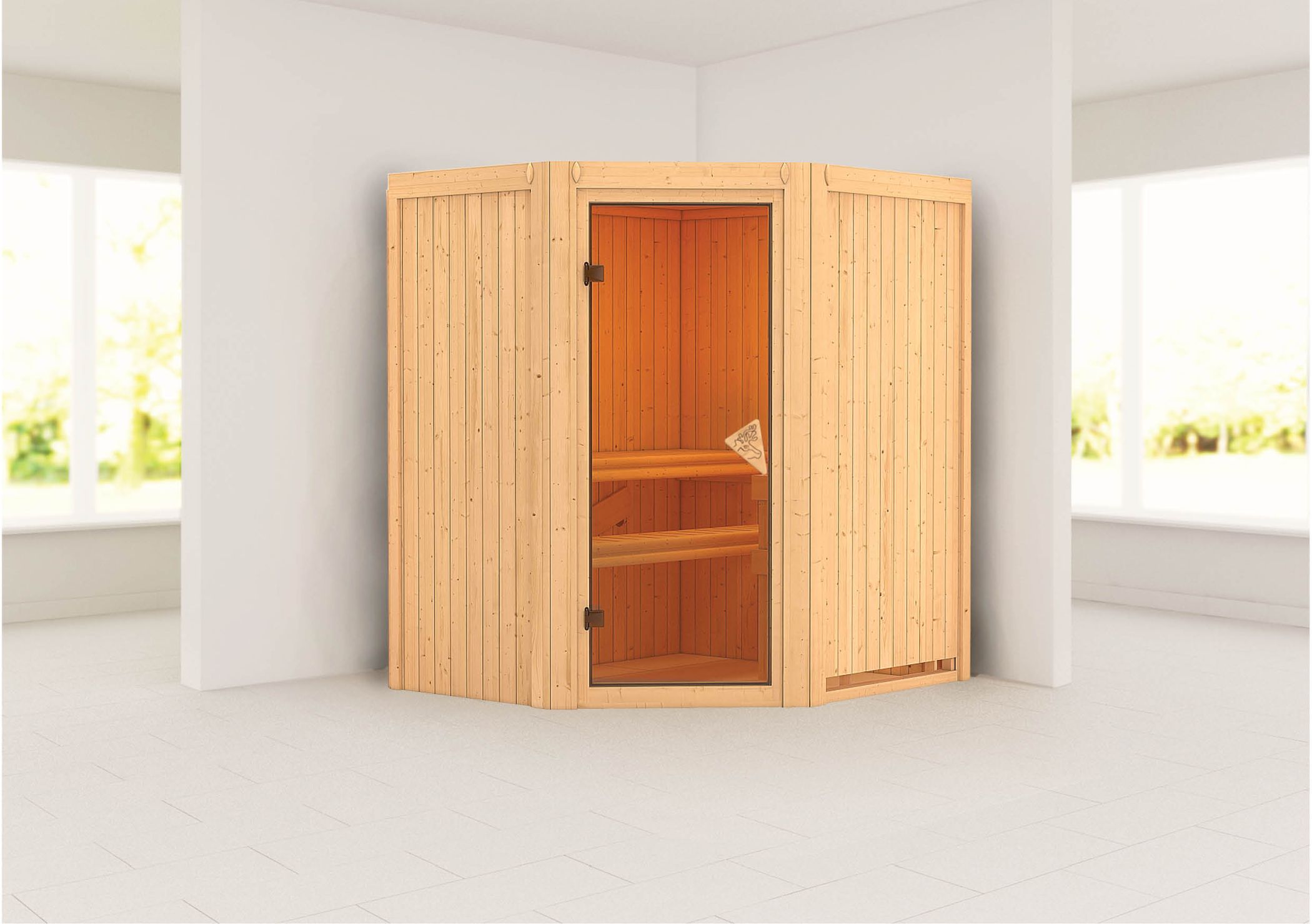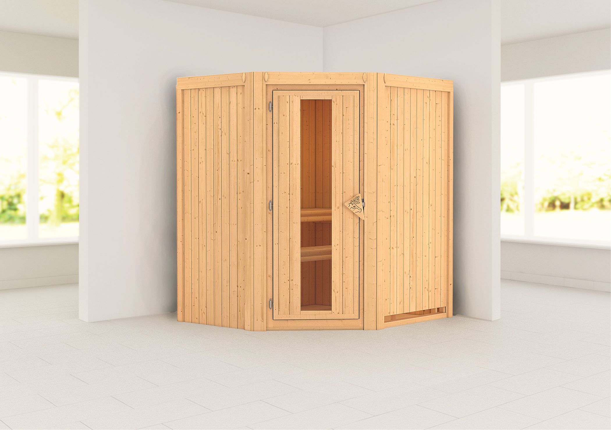 Karibu Indoor sauna "Sauna Tonja" 2 persons 230 V without stove Wooden door