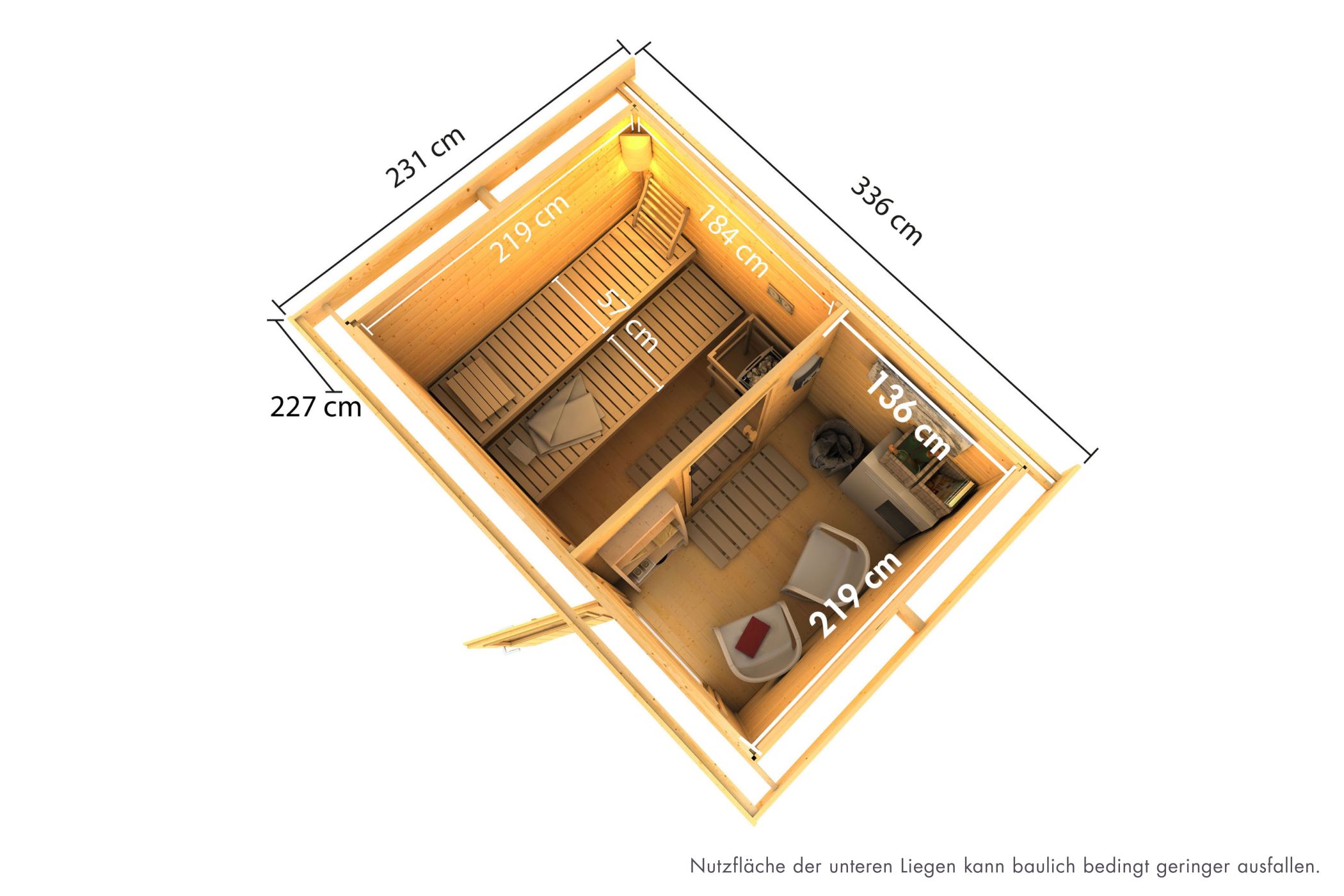 | Interior dimensions depth sauna: | 219 cm |