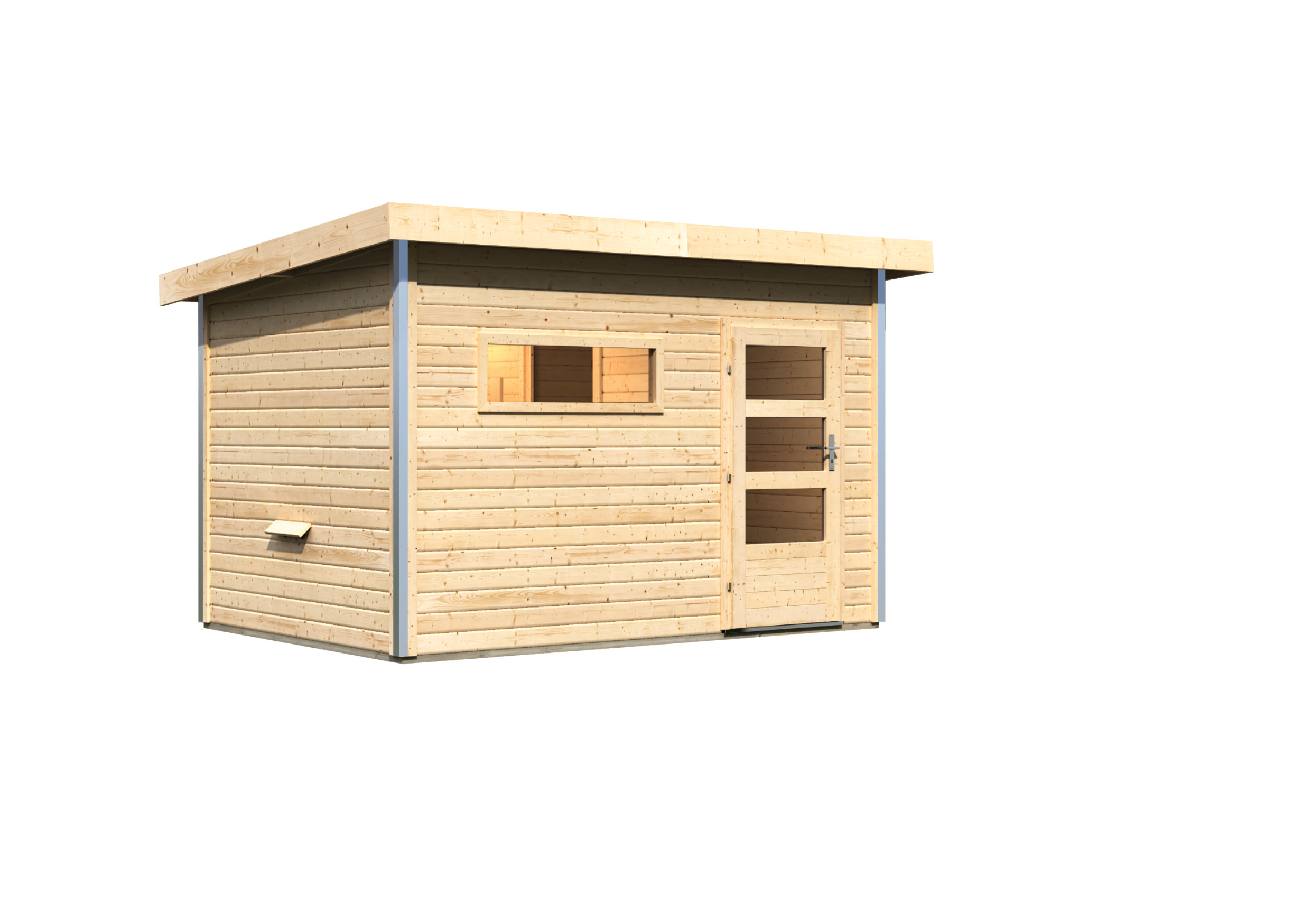 Karibu Gartensauna "Saunahaus Skrollan 2 mit Vorraum" 4 Personen Natur ohne Ofen moderne Tür
