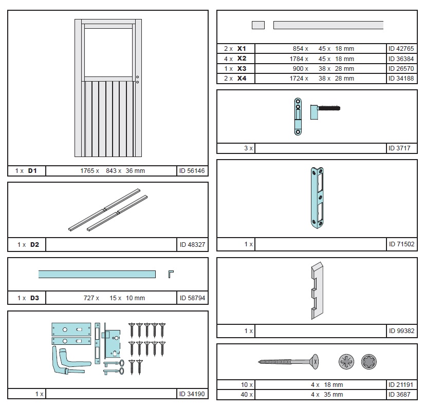 Adapt your garden house to your circumstances. The single-leaf door for garden sheds with a wall thickness of 28 mm has an external dimension of (WxH) 84.3 x 176.5 cm. The passage width is 82.5 cm and the passage height is 173 cm.