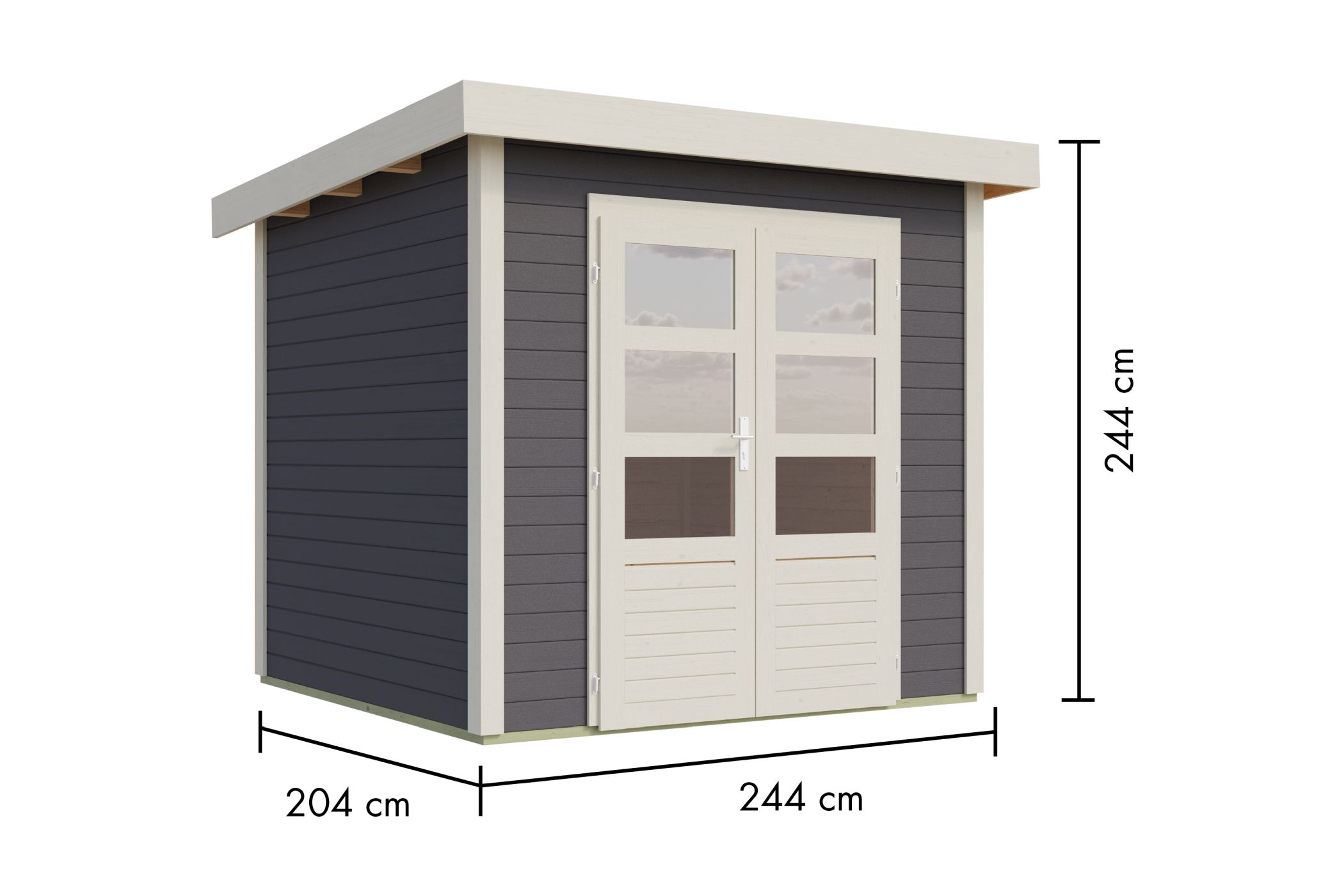 Karibu small garden house "Kolbin 2 XXL (Extra High Door)" monopitch roof modern made of wood in terra grey