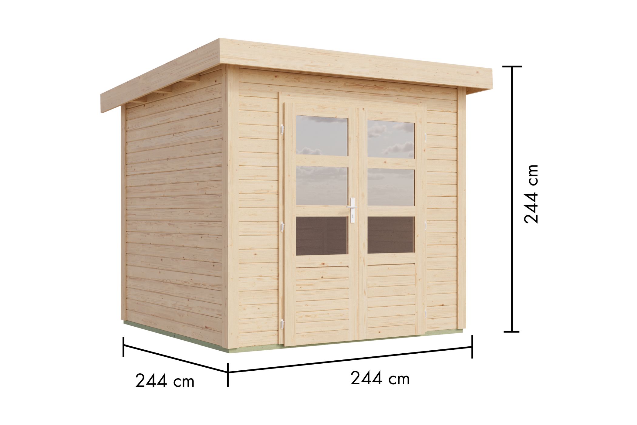 with floor: 222 cm to the lower edge of the roof board / 208 cm to the lower edge of the rafter - Garden house made of high-quality Nordic spruce with water-repellent profiling