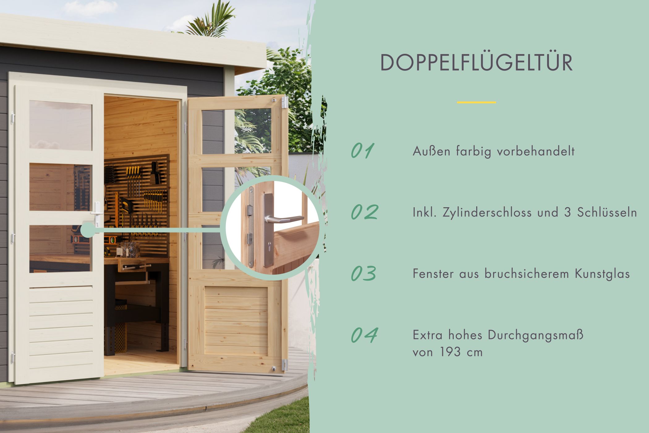 - Garden house with XXL Door and a Passage dimension of 193 cm