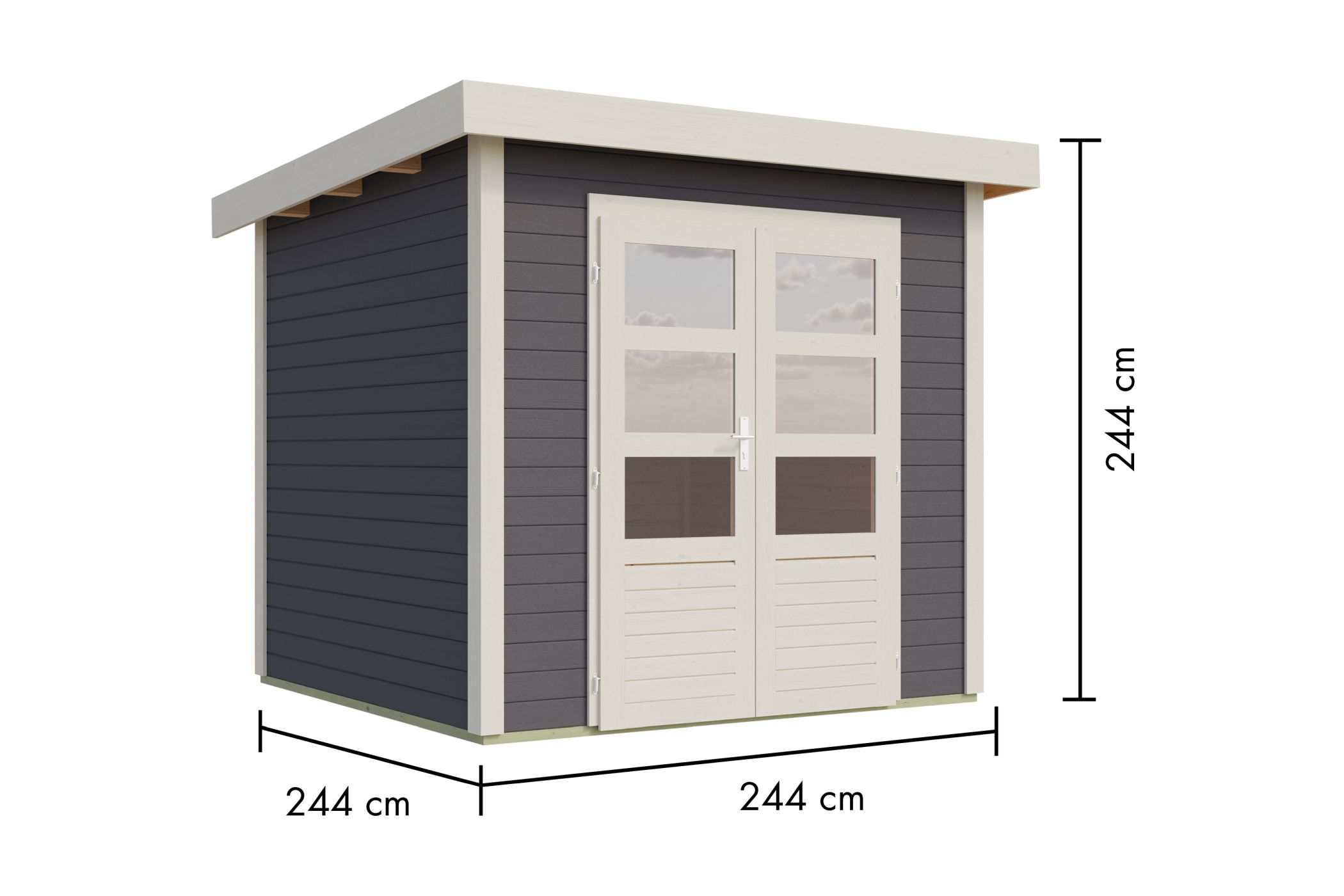 Karibu small garden house "Kolbin 3 XXL (Extra High Door) with SOLAR-KIT" monopitch roof modern made of wood in terra grey