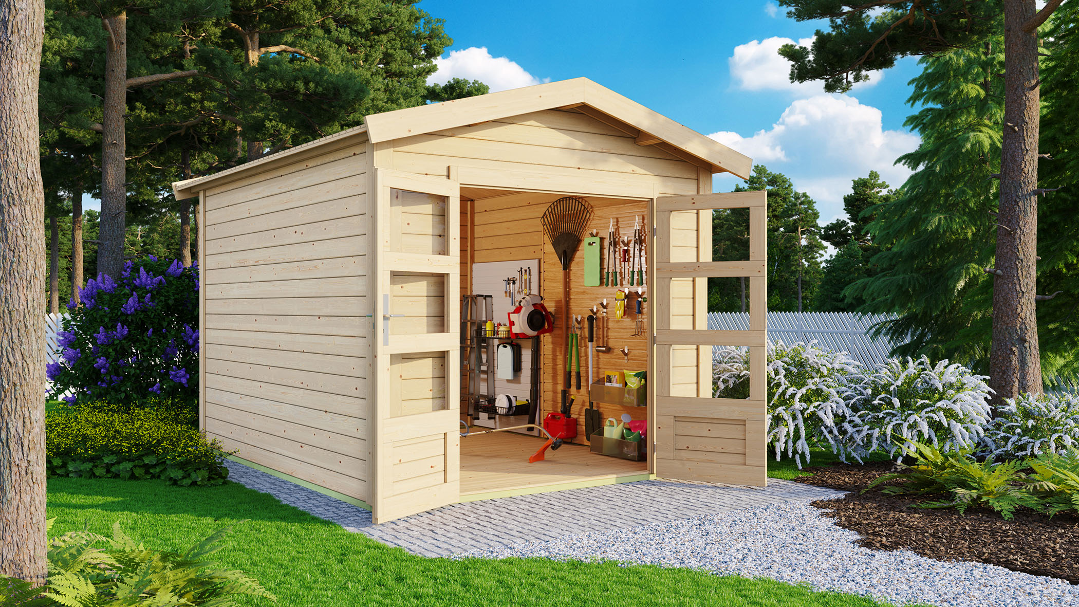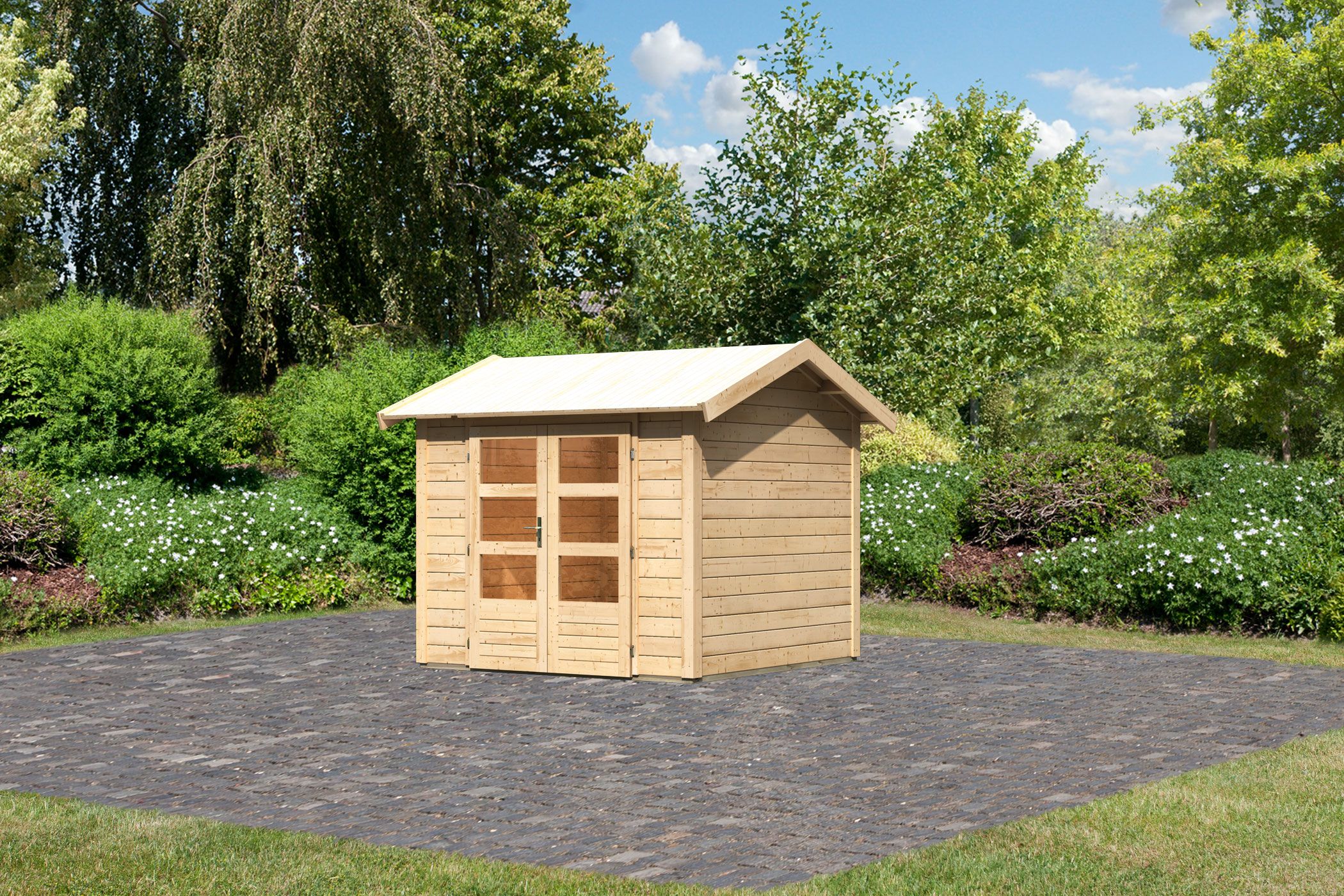 - Garden house made of high-quality Nordic spruce with water-repellent profiling