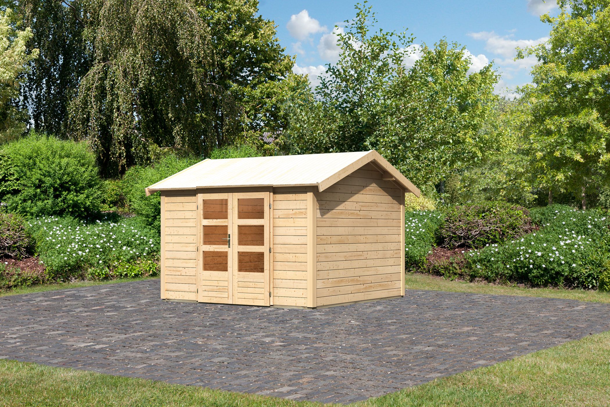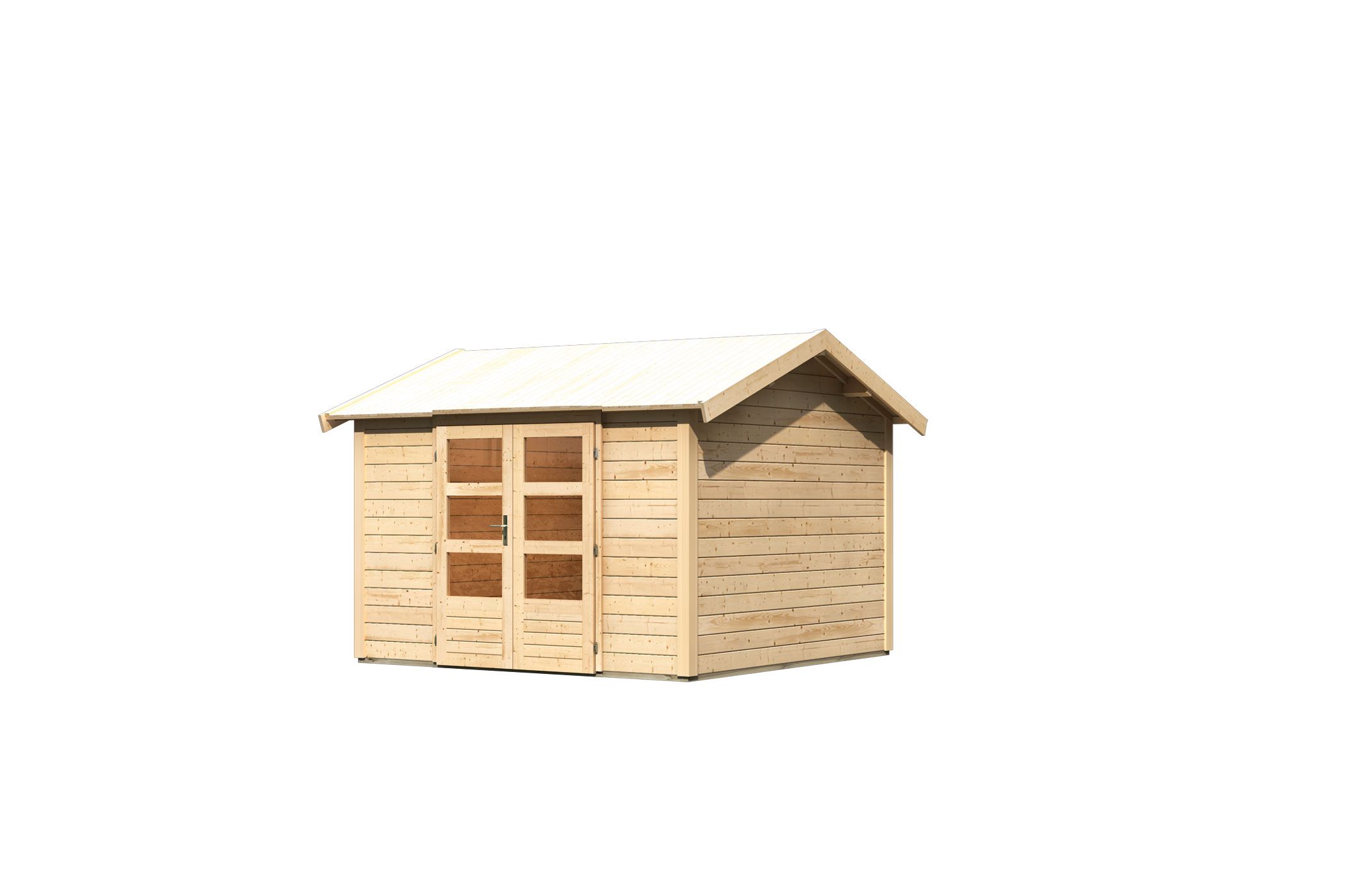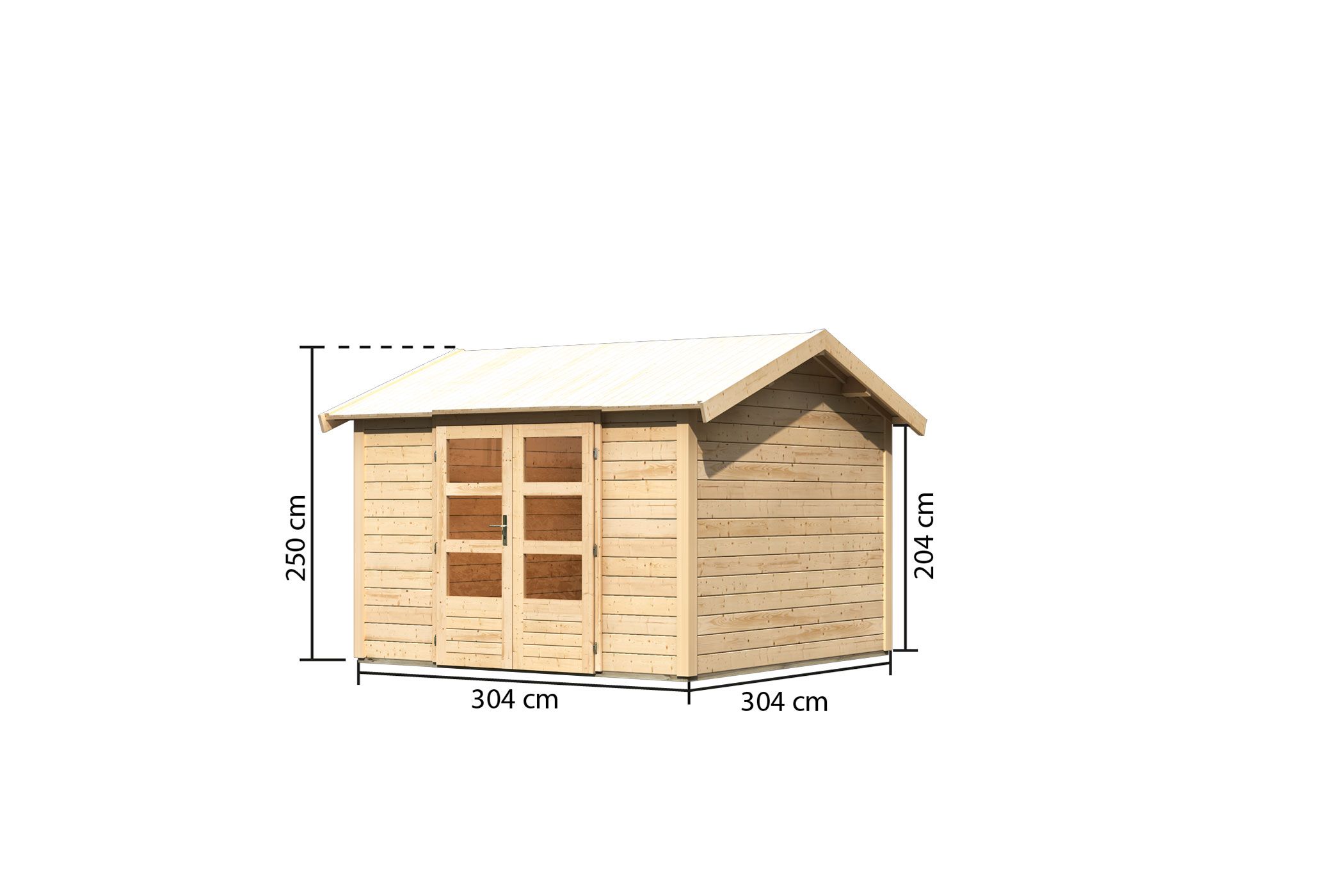Karibu Garden house "Theres 7" gable roof approx. 3x3m (3.04x3.04m) with extension/terrace modern made of wood in nature