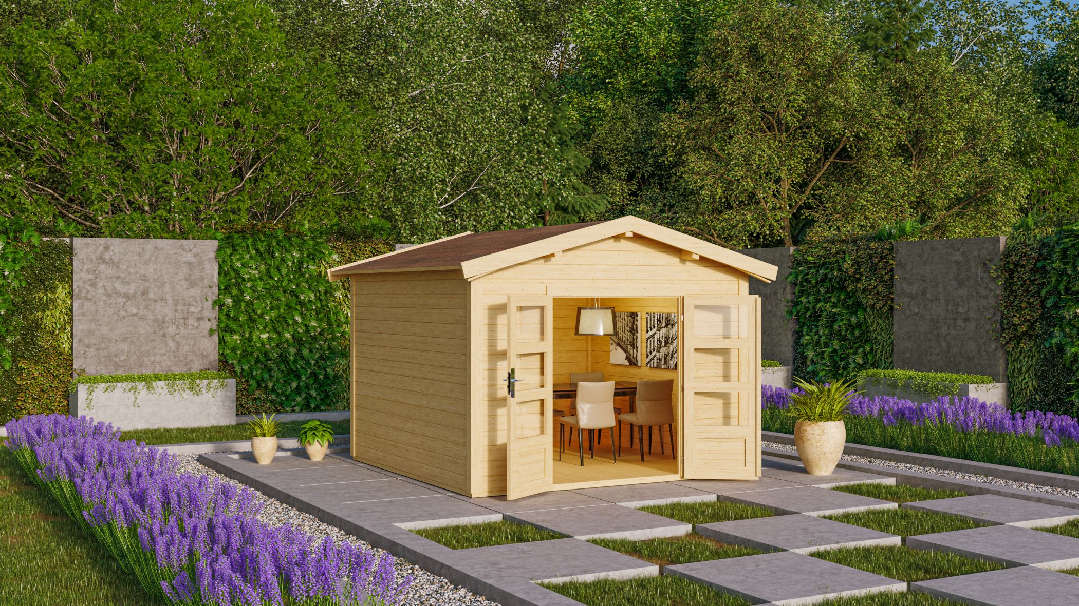 - Garden house made of high-quality Nordic spruce with water-repellent profiling