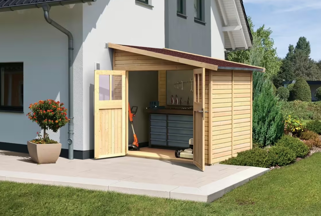 A lean-to garden house basically has only three walls, which saves material and costs. It should be even cheaper? We occasionally offer selected models at a special price in our garden house offers.