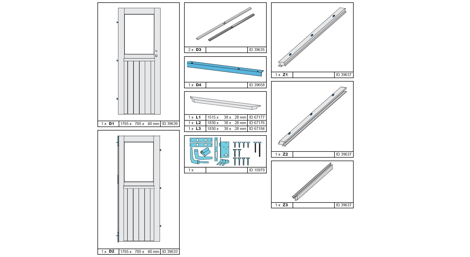 - 38mm Gartenhaustür Doppelflügeltür Komplettset