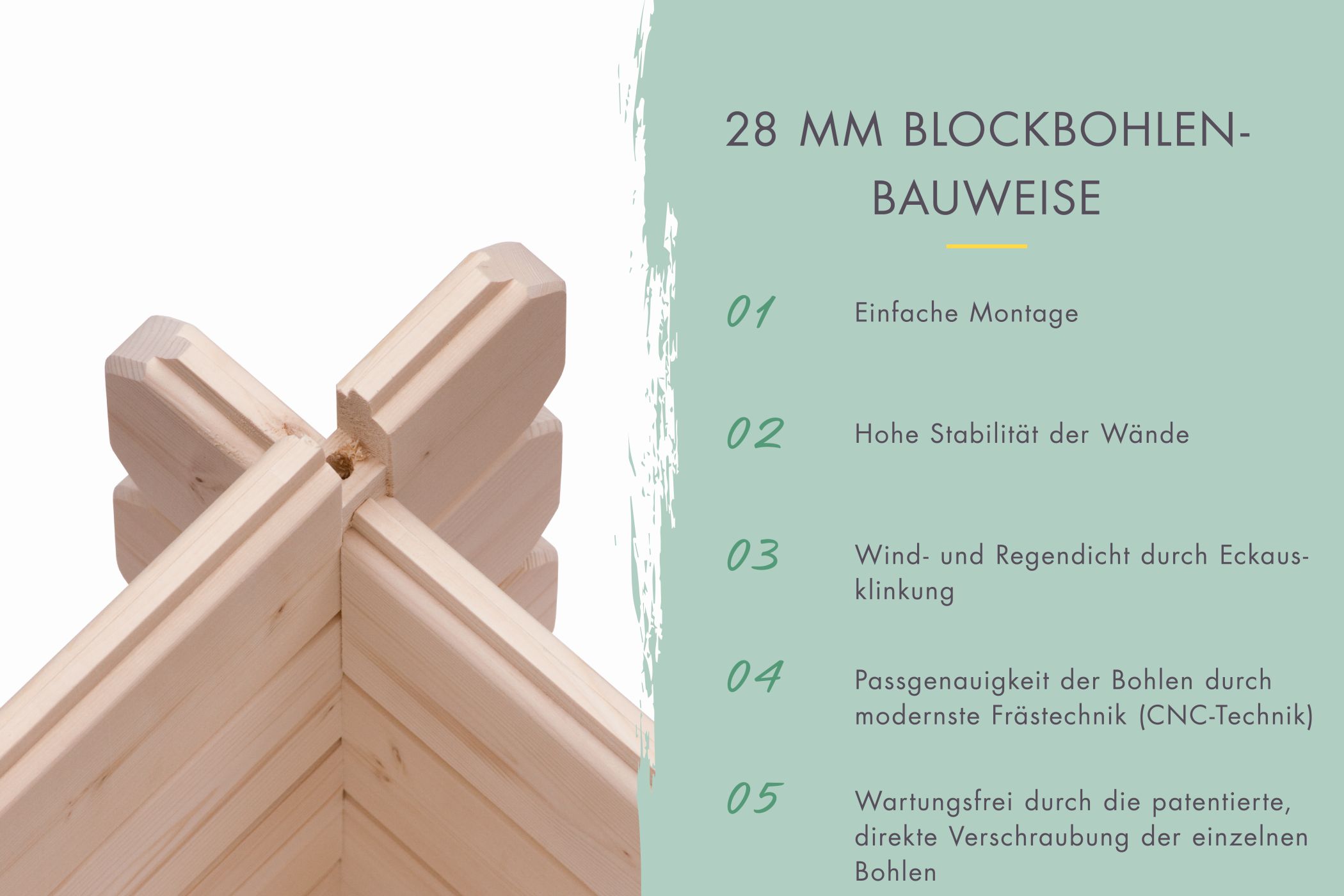 - tongue and groove connection and water-repellent profiling