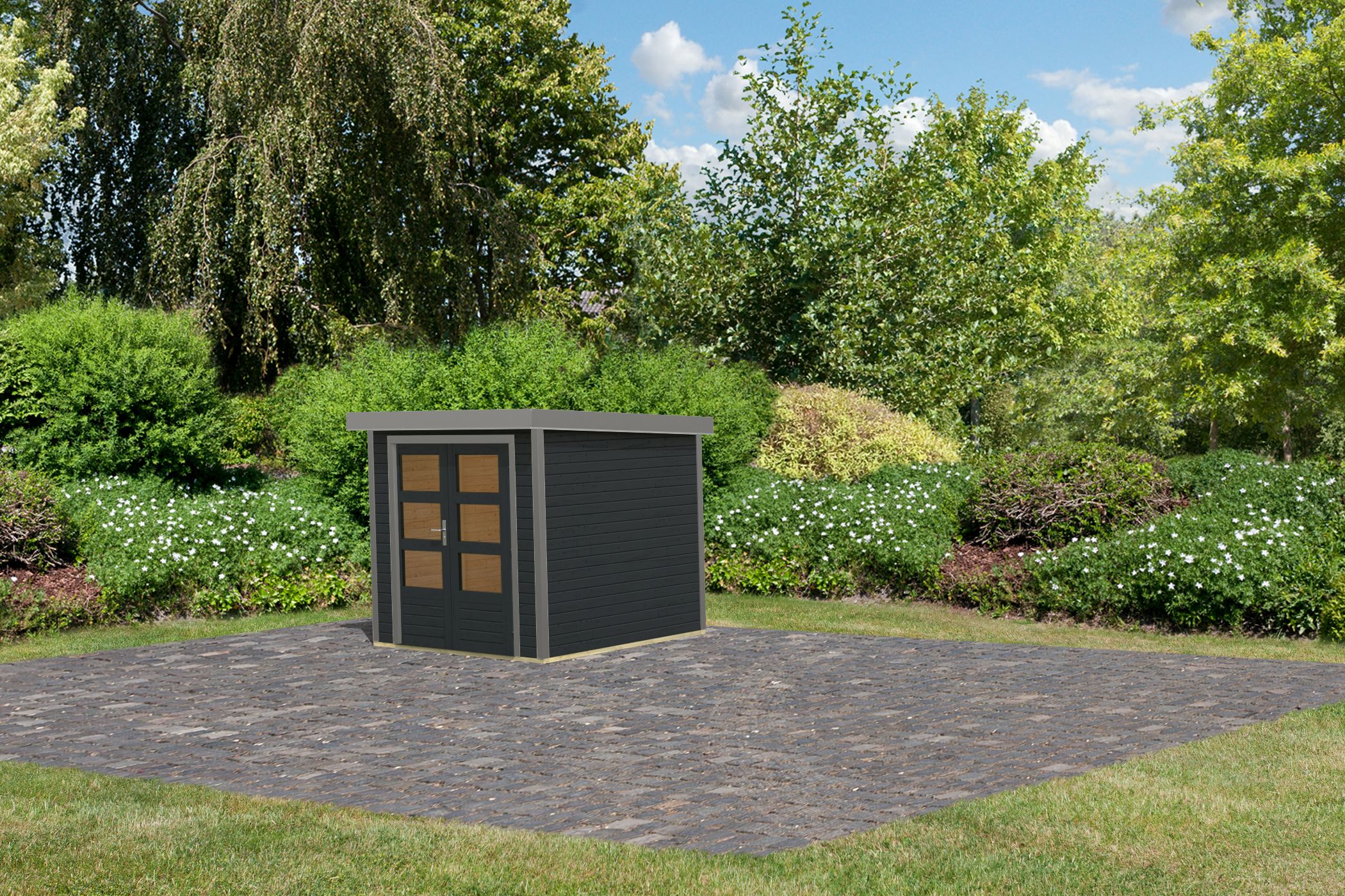 Karibu small garden house wood & metal "Jupiter 2" monopitch roof approx. 2x2m (2.09x2.13m) modern in anthracite