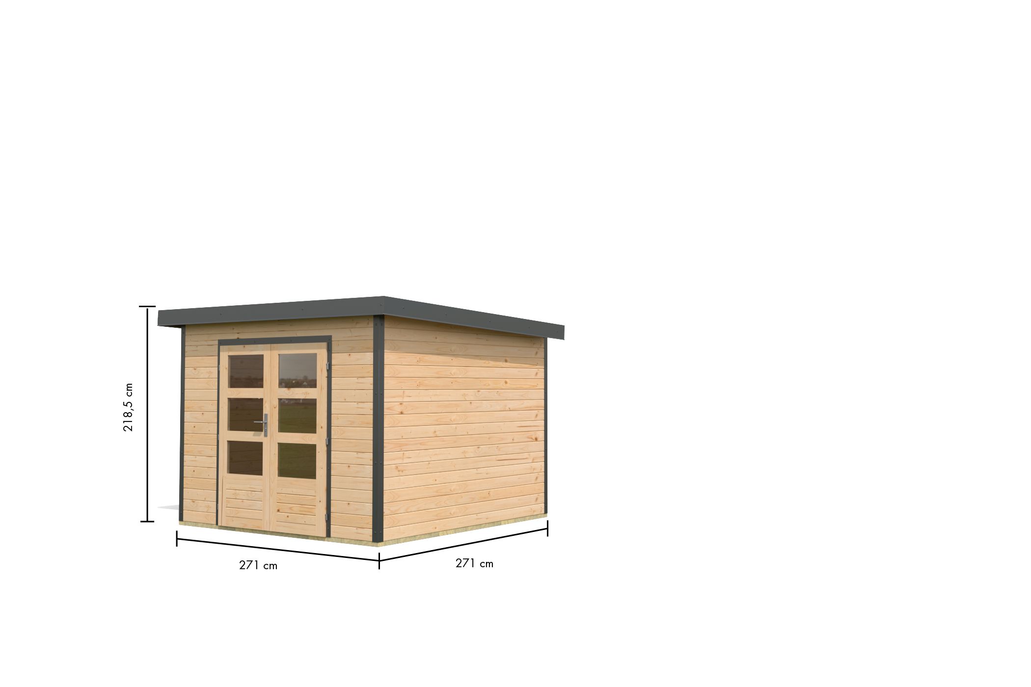 Das Gartenhaus wird aus hochwertigen Materialien gefertigt: Die Wände bestehen aus Nordic spruce , bekannt für ihre natürliche Schönheit und Robustheit. Steel corners und ein Trapezblechdach verleihen dem Design einen modernen Touch.