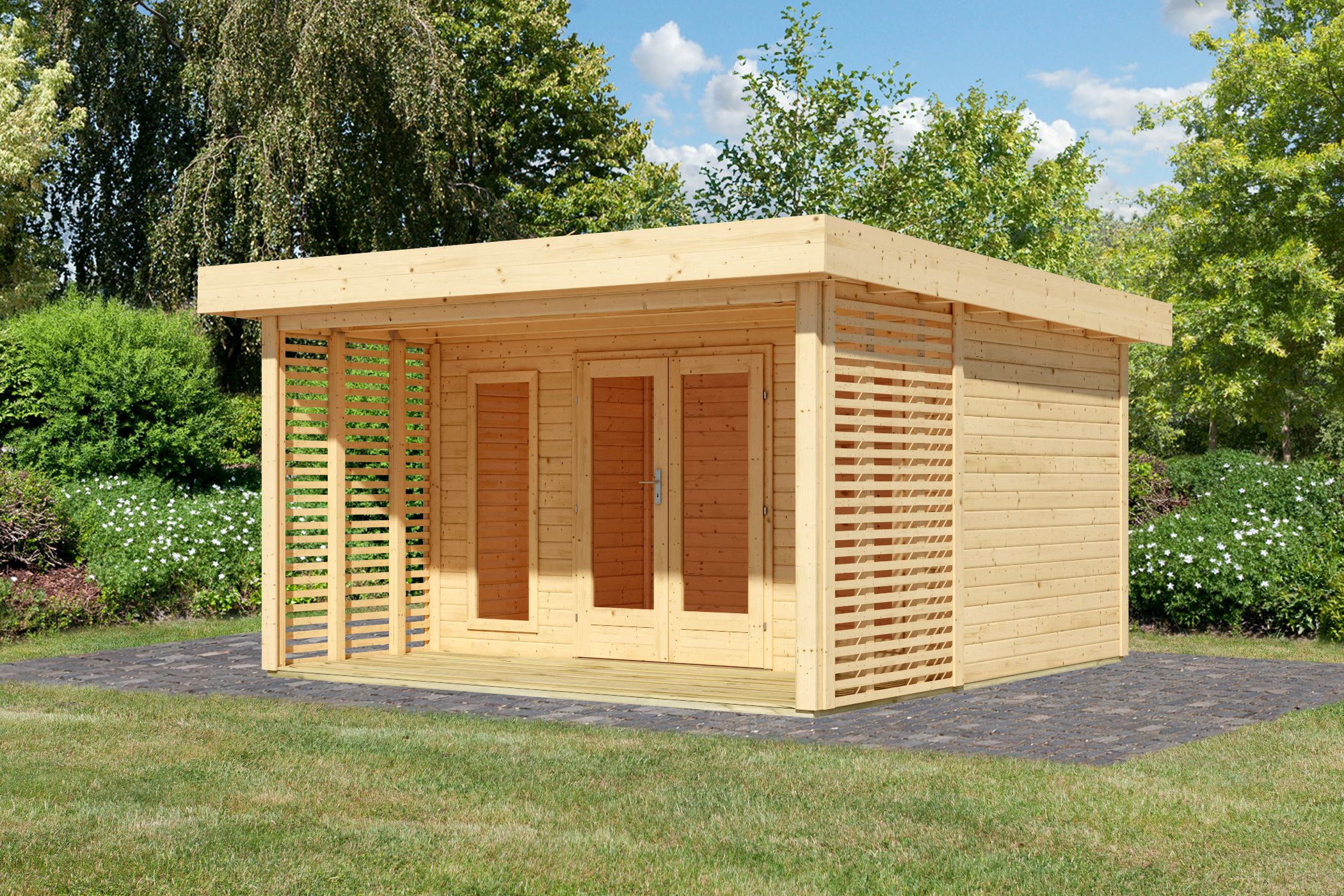 Karibu large pool house "Lily" green roof approx. 4x4m (3.96x3.96m) modern made of wood in nature