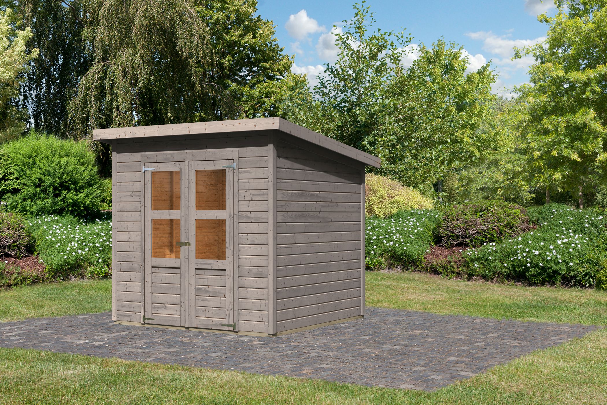 Karibu Garden shed "Merseburg 4" monopitch roof approx. 2x2m (2.12x2.14m) modern made of wood in pre-grey
