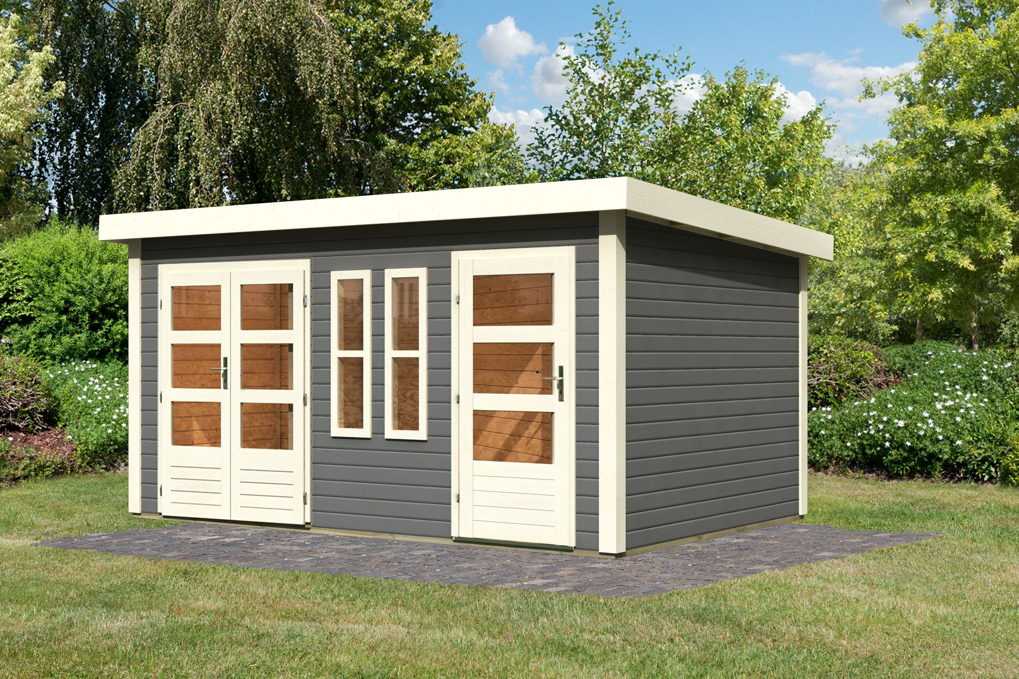 Karibu Garden house "Schönbuch 2" flat roof for living with two rooms modern made of wood in terra grey
