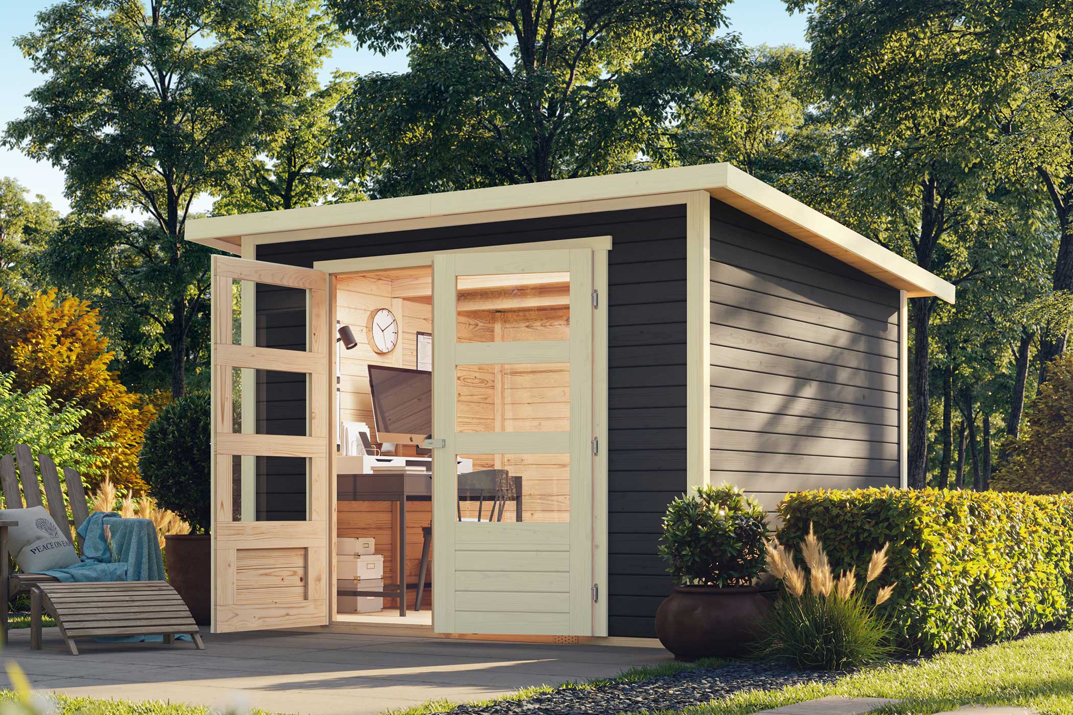 Karibu Garden shed "Stockach 4" monopitch roof modern made of wood in terra grey