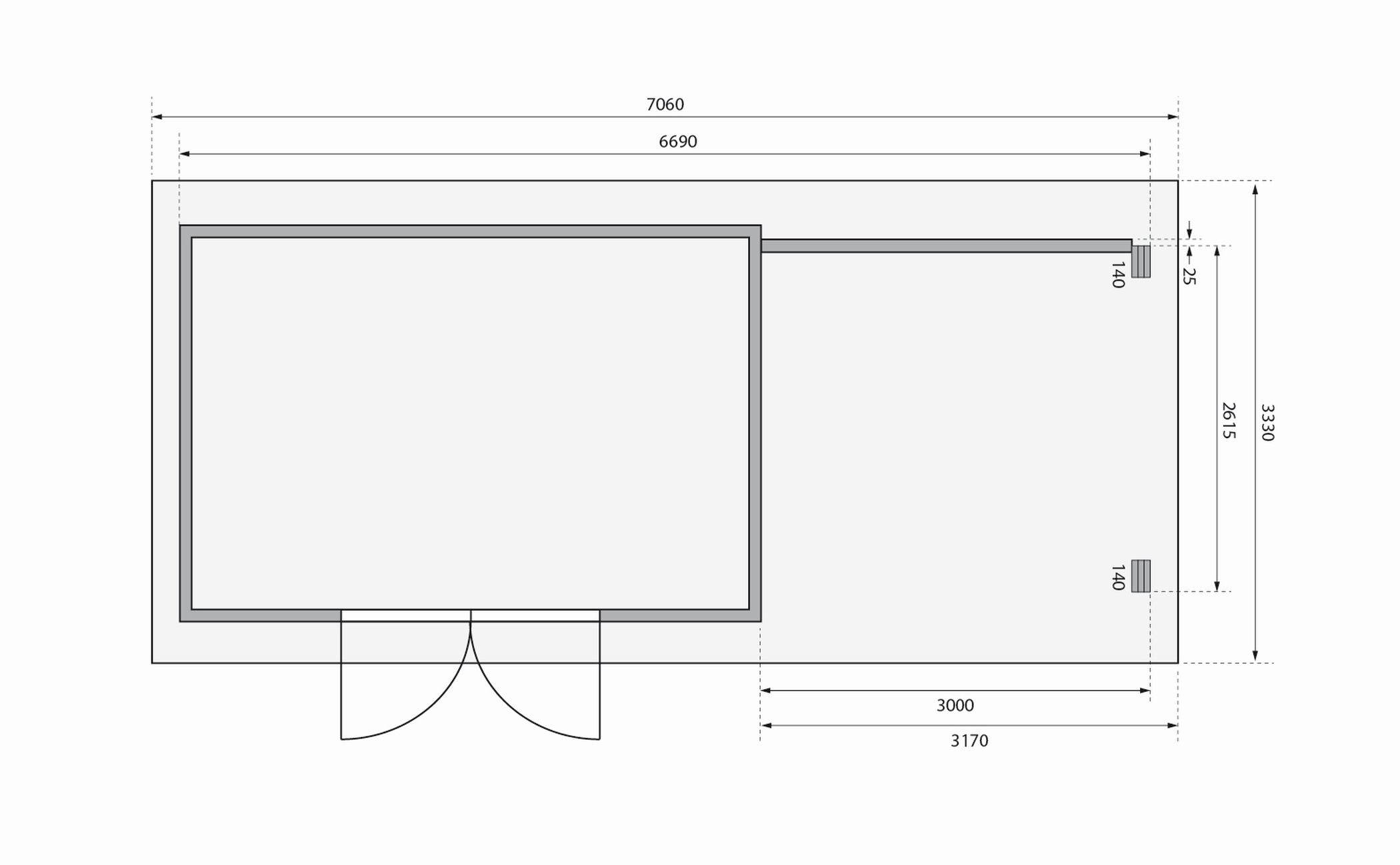 Für jeden Garten das Richtige mit dem Gartenhaus Trittau 5. Das Gartenhaus mit einer Wandstärke von 38 mm aus nordischem Fichtenholz wird in klassischer Blockbohlenbauweise montiert. Durch die patentierte 6-Plus-Eckverbindung erhält das Haus eine besondere Stabilität. Das Pultdachhaus aus Massivholz überzeugt durch seine moderne Optik. Die Doppelflügeltür mit drei Lichtausschnitten je Türflügel lässt viel Tageslicht ins Innere und sorgt so für eine natürliche Lichtquelle. Das Gartenhaus Trittau 5 ist in Naturbelassen erhältlich und lässt sich durch ein optional erhältliches Anbaudach in 3,30 m oder 4,40 m breite erweitern. Somit ist eine individuelle Gestaltung nach den eigenen Vorstellungen ohne weiteres möglich. Der Innenraum mit den Maßen (BxT) 364 x 274 cm ist großzügig geschnitten und bietet Ihnen eine große Vielfalt an Einrichtungsmöglichkeiten. So kann das Haus als Unterstellmöglichkeit für Ihre Gartengeräte, als Spielhaus für Ihre Kinder oder als gemütlichen Rückzugsort im eigenen Garten dienen. Ihrer Kreativität sind hier keine Grenzen gesetzt. Durch ein Fenster und einen optional erhältlichen Fußboden wird das Gartenhaus so richtig heimisch und ist bestimmt das Richtige für Ihren Garten.