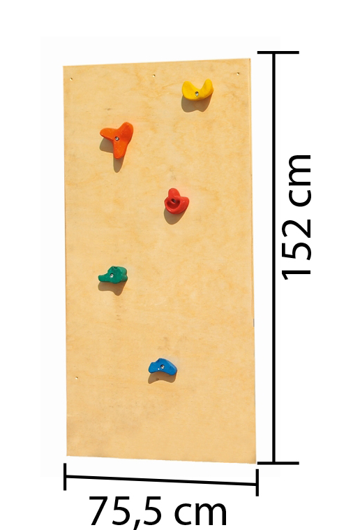 The external dimensions of the climbing wall are W 75.5 cm x H 152 cm.