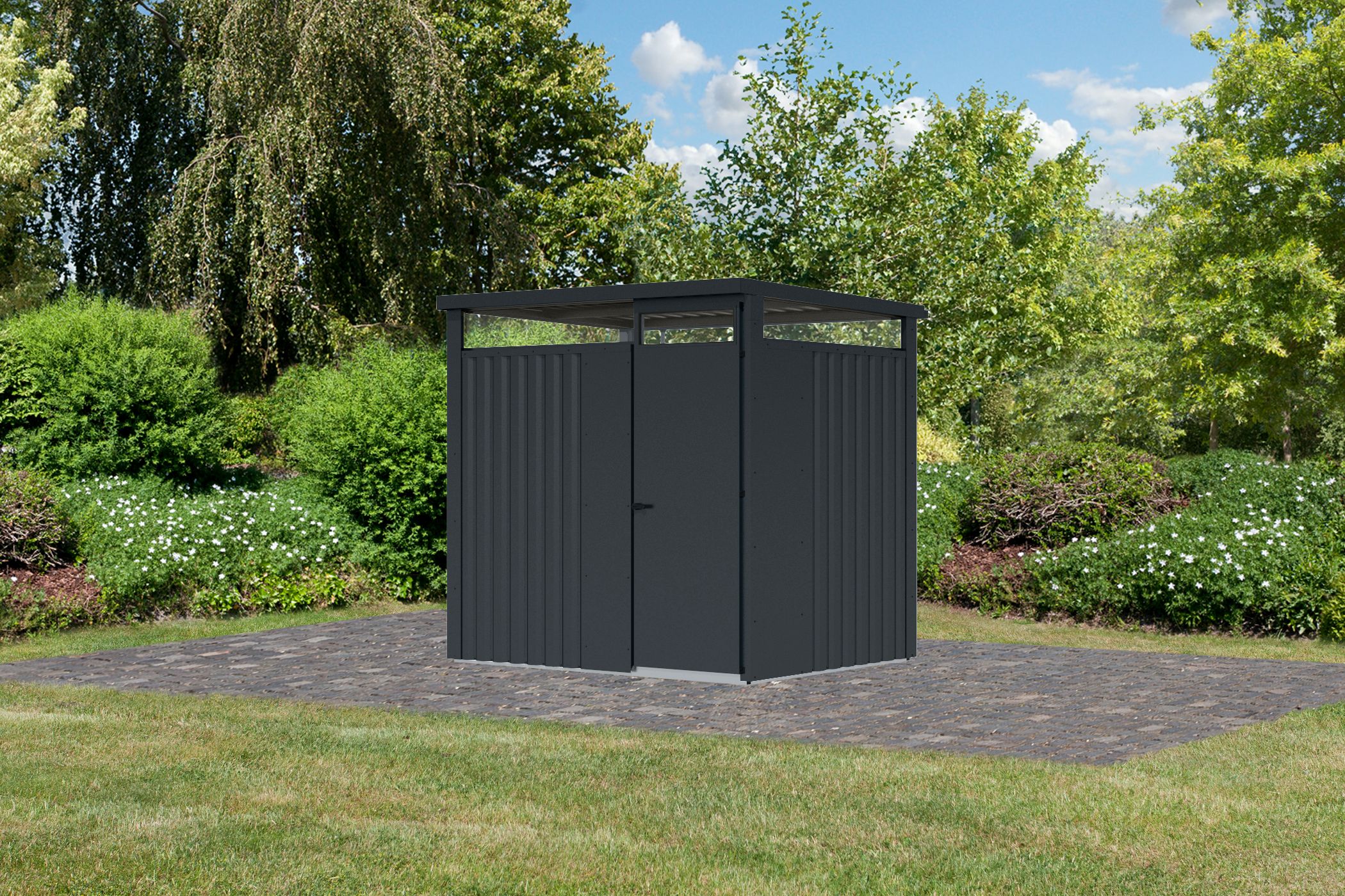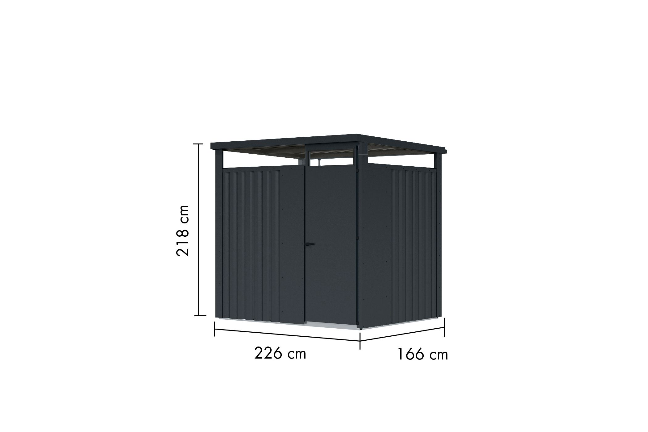 Karibu kleines Gerätehaus aus Metall “Østen 1,5 / Lagerabverkauf” Flachdach in Anthrazit - Abverkauf