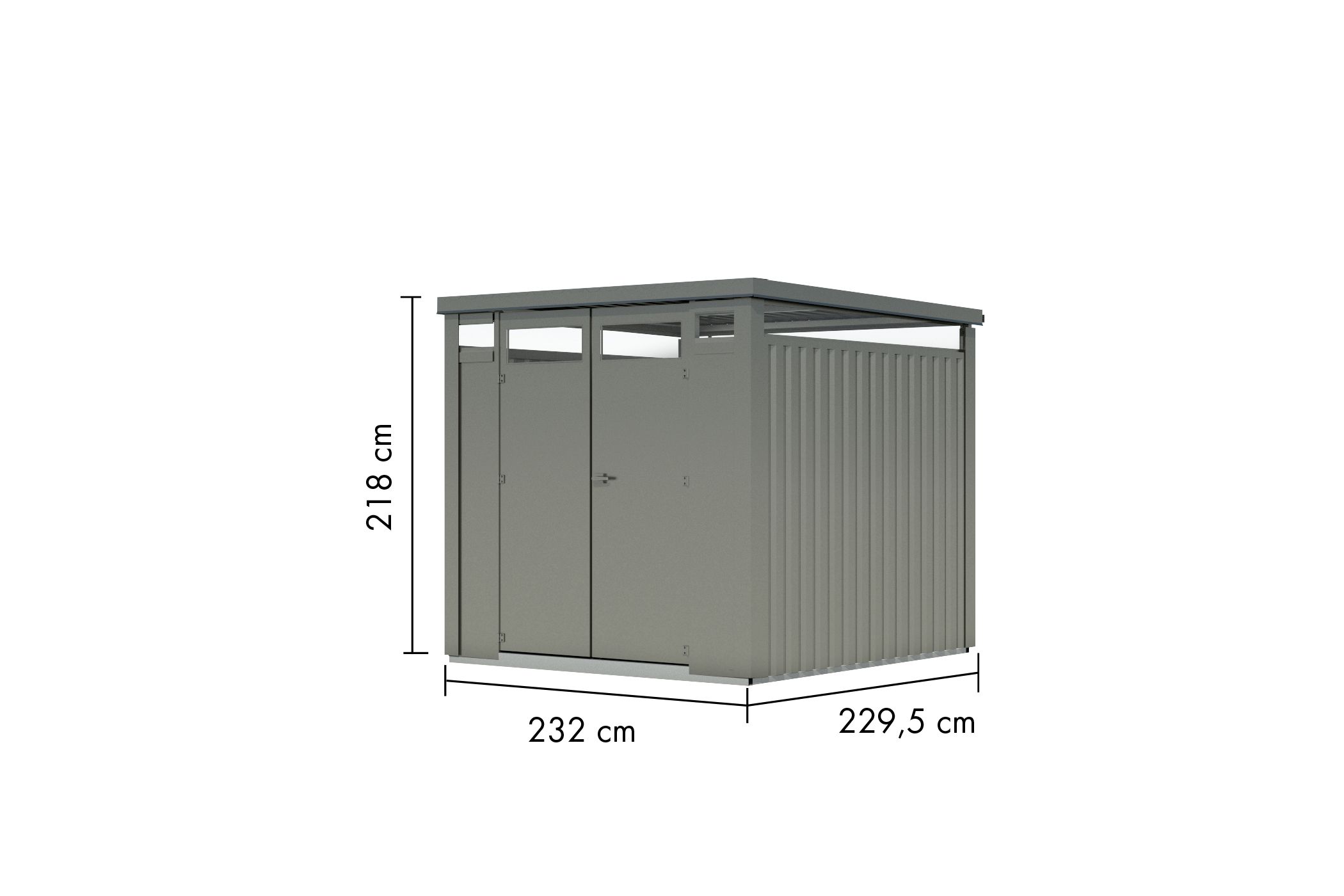 Karibu Gerätehaus aus Metall “Østen 2 / Lagerabverkauf” Flachdach in Graualuminium - Abverkauf